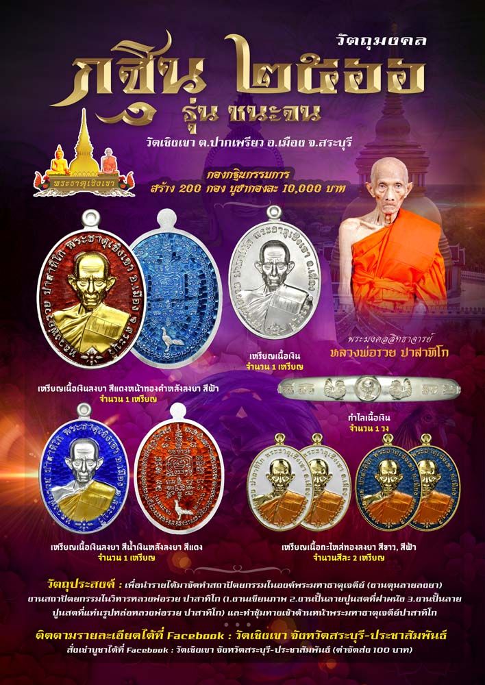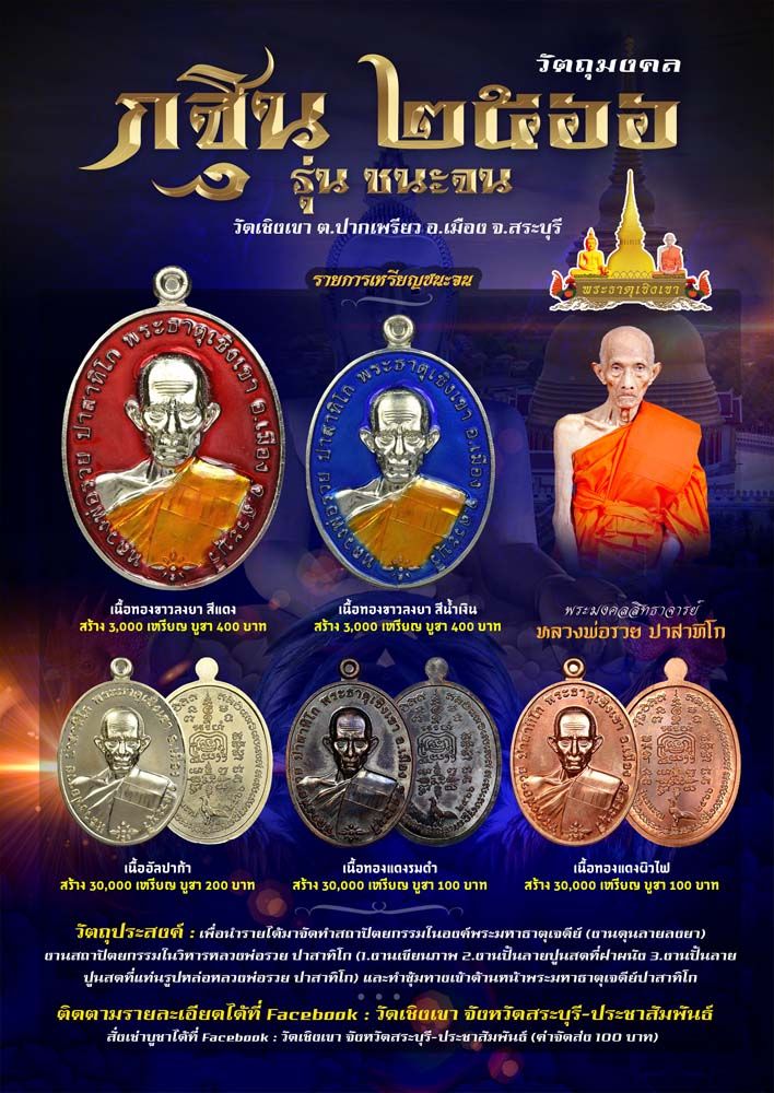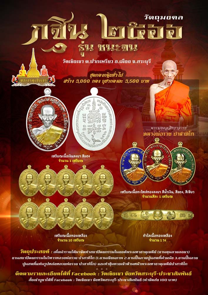 ซึ่งการจัดสร้างวัตถุมงคลหลวงพ่อรวยปาสาทิโกพระมหาธาตุเจดีย์ปาสาทิโก (พระธาตุเชิงเขา)รุ่น ชนะจน รุ่นนี้ จัดสร้างขึ้นเพื่อมอบให้กับศิษยานุศิษย์ที่มีจิตเลื่อมใสมีใจศรัทธาในพระเดชพระคุณหลวงพ่อรวยปาสาทิโกและพระมหาธาตุเจดีย์ปาสาทิโก