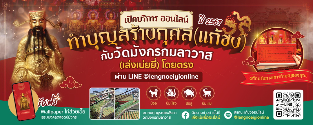 ผู้ประสงค์ทำบุญสร้างกุศล (แก้ชง)สามารถสู่เข้าบริการได้ผ่านทาง LINE @lengnoeiyionline(https://cutt.ly/AwAG36D2) ขั้นตอนง่ายๆ เพียง