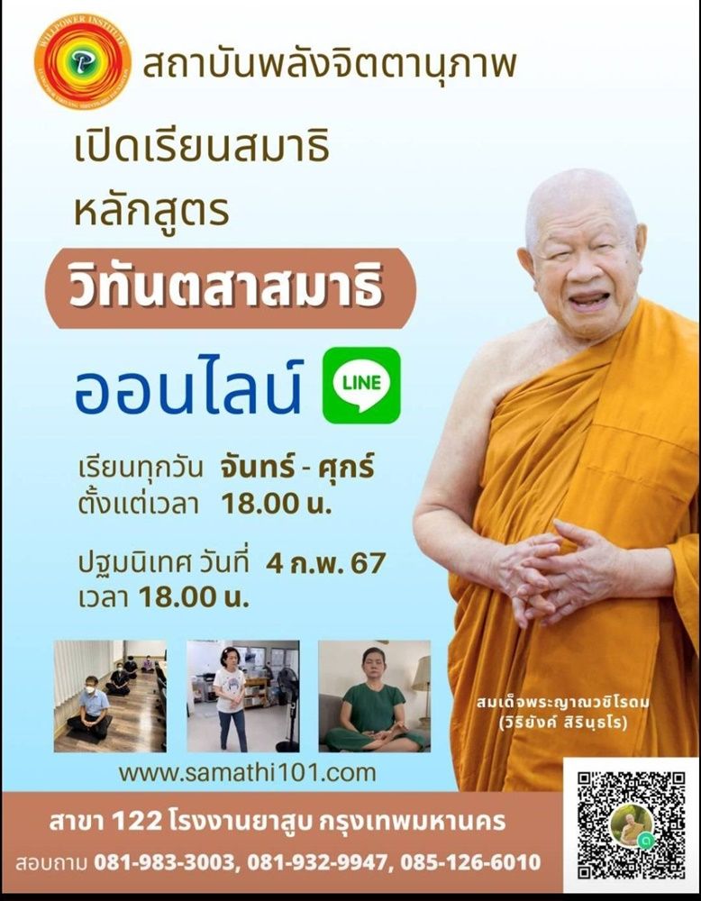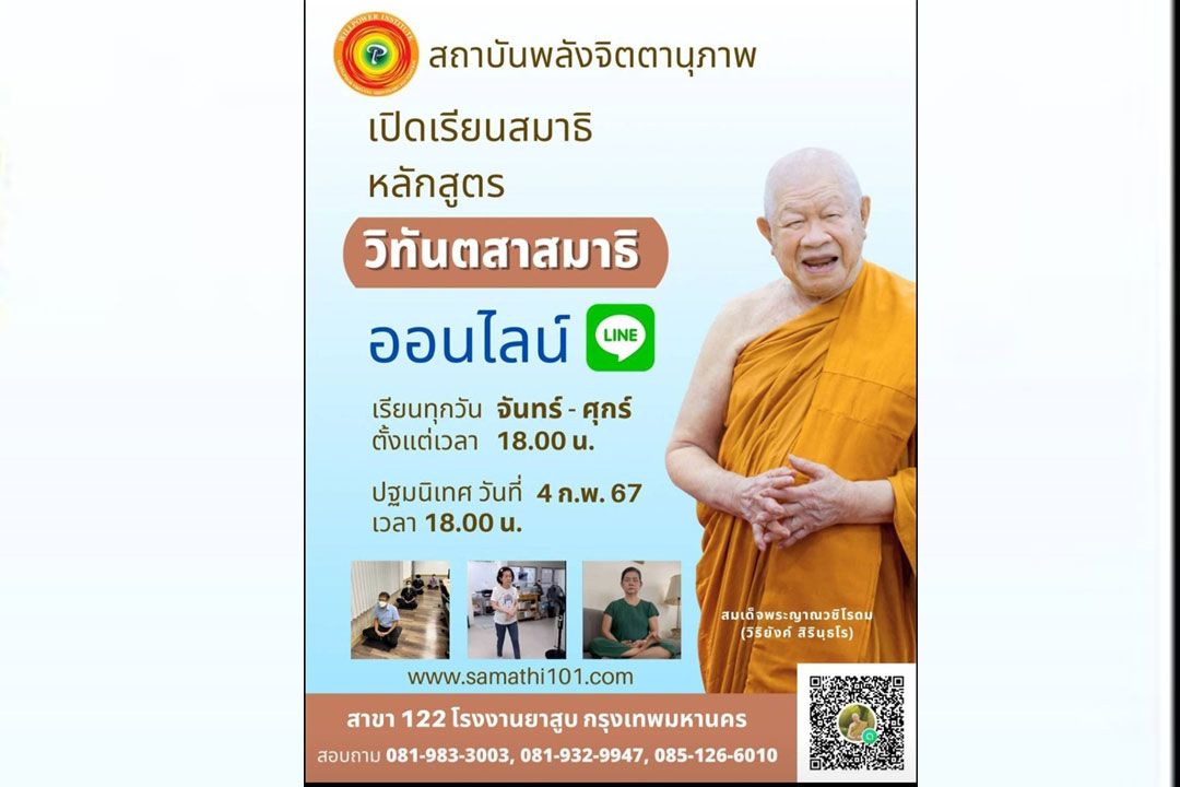 สถาบันพลังจิตตานุภาพสาขา 122 เปิดรับสมัครเรียนสมาธิออนไลน์หลักสูตรวิทันตสาสมาธิออนไลน์ รุ่นที่ 6 จำนวน 100 คน