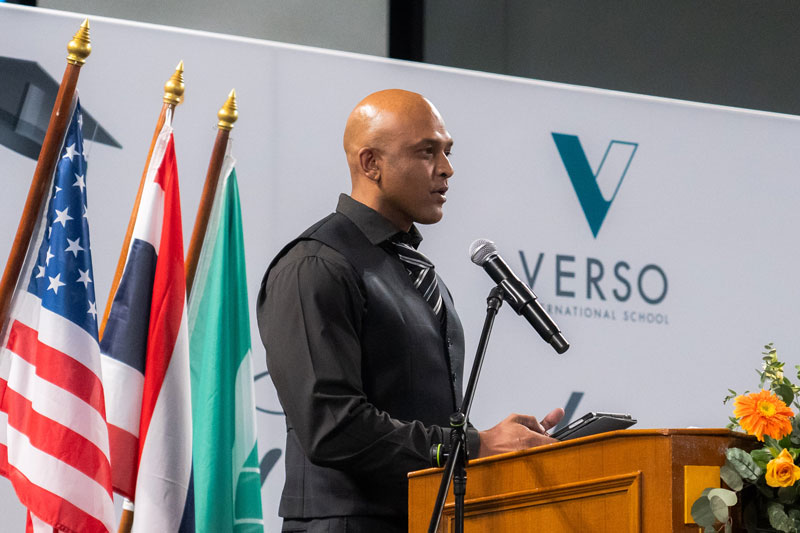 นายไรอัน เพอร์ซอด ครูใหญ่โรงเรียนนานาชาติเวอร์โซ เปิดเผยว่า นับเป็นเวลา 4 ปี ที่โรงเรียนได้เปิดสอนอย่างเป็นทางการ ซึ่งเป็นเรื่องน่ายินดีที่โรงเรียนแห่งนี้ ได้ดำเนินการเปิดสอนหลักสูตรที่มีคุณภาพ และสร้างสรรค์ มาอย่างต่อเนื่อง ซึ่งนักเรียนระดับชั้นมัธยมศึกษาปีที่ 6 รุ่นแรกของโรงเรียนจำนวน 7 คน ได้จบการศึกษาอย่างเป็นทางการ และยังได้รับการตอบรับจากมหาวิทยาลัยชั้นนำทั่วโลกจำนวน 50 แห่ง ซึ่งเป็นเรื่องที่น่าภาคภูมิใจของนักเรียนที่ได้รับการตอบรับที่ดี จากมหาวิทยาลัยชั้นนำระดับโลก และต้องยกเครดิตให้กับนักเรียนทั้ง 7 คน ที่ตั้งใจศึกษาเล่าเรียน และทำโครงงานอย่างจริงจัง จนได้รับโอกาสเหล่านี้ โดยนอกเหนือจากทักษะการเรียน และการคิดวิเคราะห์ที่นักเรียนทุกคนจะได้ติดตัวไปจากโรงเรียนแห่งนี้แล้ว ทักษะในการใช้ชีวิต และการอยู่ร่วมกับสังคมก็เป็นสิ่งที่โรงเรียนนานาชาติเวอร์โซ หล่อหลอมให้กับนักเรียนเหล่านี้ เพื่อให้กล้าคิด กล้าทำ กล้าแสดงออก และยังสามารถนำทักษะที่หลากหลายไปปรับใช้กับการดำเนินชีวิต และการเล่าเรียนในระดับที่สูงขึ้น ตรงตามเป้าหมายของโรงเรียนที่ต้องการพัฒนานักเรียนเหล่านี้ ให้เป็น “พลเมืองของโลก (Citizen Designers)” ที่จะช่วยพัฒนาโลก ณ ปัจจุบัน และในอนาคตให้ดียิ่งขึ้น