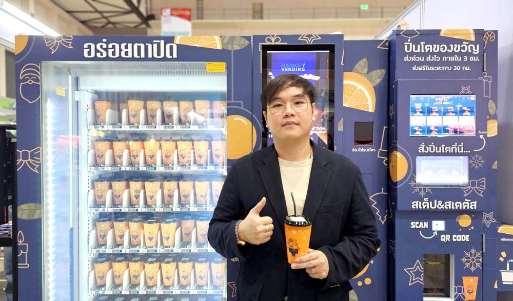 นาย เบญจภณ วิเศษสินธพ กรรมการผู้จัดการ บริษัท พรีเมี่ยมฟรุ๊ตคอร์ปอเรชั่น จำกัด ได้กล่าวถึงเส้นทางการเติบโตและเป้าหมายในอนาคตของแบรนด์ว่า “ก่อนที่จะพัฒนามาเป็นตู้จำหน่ายสมูทตี้ UNCLE BEN Premium Fruit เราทำธุรกิจขายกระเช้าผลไม้มาก่อน จนเมื่อความต้องการของสินค้าประเภทนี้เพิ่มขึ้นและแบรนด์ก็เติบโตมาถึงจุดหนึ่ง ด้วยประสบการณ์ขายผลไม้ออนไลน์กว่า 8 ปี เราจึงอยากบุกตลาดออฟไลน์ เรามองว่าประเทศไทยเป็นเมืองร้อน เหมาะแก่การขายเครื่องดื่มเย็นๆ บวกกับผลไม้นำเข้าที่เรามี และ Trend Healthy ที่กำลังมาเป็นสิ่งที่ท้าทาย และทำให้เราตัดสินใจทำตู้ สมูทตี้ปั่นผลไม้ 100% ขึ้นมาที่ชื่อ UNCLE BEN Premium Fruit ก่อนหน้านี้เราได้ลองเปิดหน้าร้านที่ BTS ซึ่งก็เหมือนการได้รีเสิร์ชข้อมูลควบคู่ไปด้วย เพราะผลไม้ทั่วๆไปคนสามารถหาซื้อรับประทานได้ตามสถานที่ต่างๆ แต่ผลไม้นอก หรือผลไม้นำเข้าเกรดพรีเมี่ยม และนำมาปั่นเป็นสมูทตี้ยังไม่มีที่ไหนทำ และลูกค้าเองมีความต้องการที่จะทานผลไม้นอกแบบปั่นเยอะขึ้น ซึ่งถ้าเปรียบเทียบกับการเปิดหน้าร้านปกติ เราต้องใช้เงินในการเปิดร้านไม่ต่ำกว่า 300,000 บาท ไหนจะค่าพนักงาน มันทำให้เราคุ้มทุนช้า แต่พอปรับเปลี่ยนมาเป็นตู้ Vending แทนที่เราจะต้องใช้เงินไปเปิดหน้าร้านก็เอาเงินมาลงทุนกับตู้ Vending ค่าพนักงานก็ไม่มี ค่าเช่าถูกกว่า คุ้มค่ากว่า ประเด็นสำคัญคือ ถ้าเราวิเคราะห์พื้นที่ไม่ดี ขายไม่ดี แล้วเราลงรูปแบบร้านค้าลงไปแล้ว เราจะไม่สามารถย้ายได้เพราะมันเป็นโครงสร้างไปแล้ว ต้องรื้อกลับมาเป็นซาก แต่ถ้าเป็นตู้ Vending ความเสี่ยงมันต่ำกว่า เพราะอย่างน้อยถ้าเราวิเคราะห์ผิด เรายังสามารถย้ายที่ขายใหม่ได้ เลยติดต่อหาทีม มา support เรื่องตู้ Vending และเริ่มการผลิตร่วมกับ บริษัท แอดวานซ์ เว็บ เซอร์วิส จำกัด (มหาชน) ที่มีความชำนาญด้านนี้โดยตรง พัฒนาตู้น้ำผลไม้ปั่นอัตโนมัติ UNCLE BEN Premium Fruit ขึ้นมาเป็นเจ้าแรกในเมืองไทยและได้จดสิทธิบัตรเป็นที่เรียบร้อยแล้ว ซึ่งตู้จำหน่ายน้ำผลไม้ปั่นอัตโนมัติยังไม่มีใครทำ และเป็นไอเดียที่ล้ำ ทำให้สร้างความแข็งแรงในการแข่งขันกับตลาดได้ นอกจากนี้เรายังมีระบบ Online Ordering ในการสั่งกระเช้าผลไม้อีกด้วย เดิมทีเรามองถ้าคนที่เข้ามาซื้อน้ำปั่นของเราถูกใจว่าน้ำปั่นอร่อย เค้าก็อาจจะอยากซื้อกระเช้าผลไม้เราเพิ่มด้วย เพราะเค้าต้องมั่นใจว่าสินค้าเราดี ก็เลยเพิ่มฟังชั่นตรงนี้เข้าไป ทำให้สามารถแก้ Pain point ของเราได้ ซึ่งปกติสินค้าผลไม้สด shelf life จะค่อนข้างสั้น ถ้าเราตั้งขายสดจะทำให้อายุสินค้าอยู่ได้ไม่กี่วัน แต่ถ้าสั่งสินค้าผ่าน On