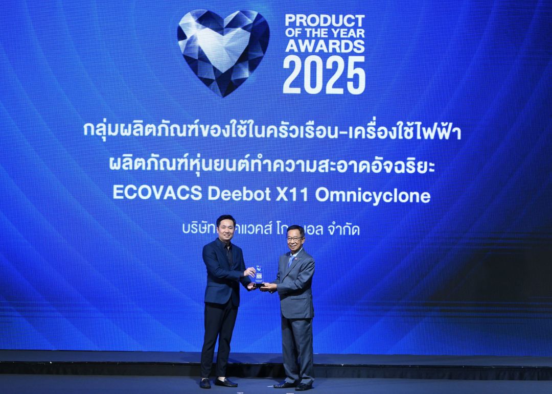 ‘ECOVACS Deebot X11 Omnicyclone’ ก้าวสู่ความสำเร็จครั้งสำคัญด้วยการคว้ารางวัล BUSINESS+ PRODUCT OF THE YEAR AWARDS 2025 ประเภทของใช้ในครัวเรือน–เครื่องใช้ไฟฟ้า ตอกย้ำภาพลักษณ์ผู้นำระดับโลกด้านนวัตกรรมหุ่นยนต์ทำความสะอาดอัจฉริยะ โดยพิธีมอบรางวัลจัดขึ้นอย่างยิ่งใหญ่ที่โรงแรมสวิสโฮเต็ล กรุงเทพฯ รัชดา ภายใต้การจัดของนิตยสาร BUSINESS+ ร่วมกับวิทยาลัยการจัดการ มหาวิทยาลัยมหิดล และได้รับเกียรติจาก ฯพณฯ นุรักษ์ มาประณีต องคมนตรี เป็นประธานในพิธี