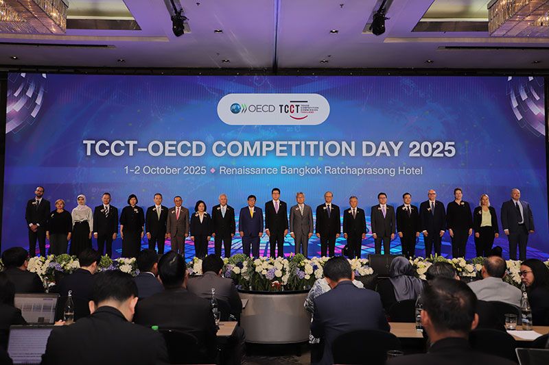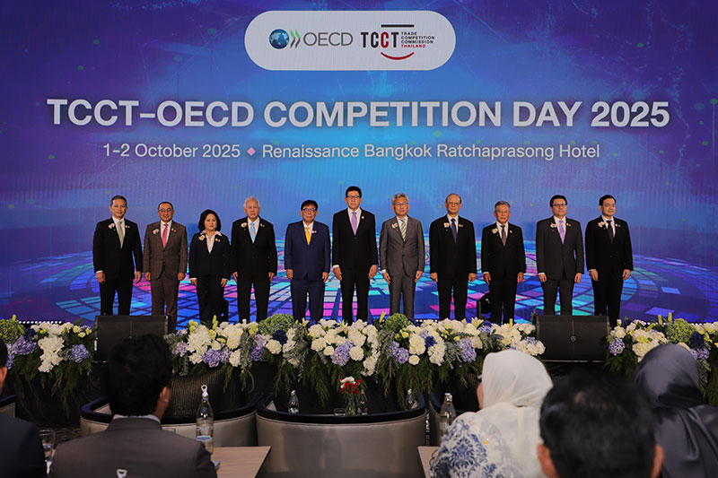 เมื่อวันที่ 1-2 ตุลาคม 2568 สำนักงานคณะกรรมการการแข่งขันทางการค้า (สำนักงาน กขค.) ร่วมกับองค์การเพื่อความร่วมมือทางเศรษฐกิจและการพัฒนา (OECD) ได้จัดการประชุมระหว่างประเทศ TCCT - OECD Competition Day 2025 เพื่อขับเคลื่อนวาระการปฏิรูปการแข่งขันของประเทศ ภายใต้โครงการ OECD - Thailand Country Programme ระยะที่ 2 โดยมีหัวข้อหลักคือ “นโยบายการแข่งขัน” ซึ่งสะท้อนถึงความท้าทายของสภาพเศรษฐกิจในปัจจุบันที่มีการเปลี่ยนแปลงอย่างรวดเร็ว โดยปัจจัยสำคัญเกิดจากความก้าวหน้าทางเทคโนโลยี เช่น เทคโนโลยีปัญญาประดิษฐ์ (AI) เศรษฐกิจสีเขียว และพลวัตทางการค้าโลก เป็นต้น ท่ามกลางสภาวะดังกล่าว กรอบการกำกับดูแลการแข่งขันที่ทันสมัย ยืดหยุ่น และเข้มแข็ง จึงไม่ได้เป็นเพียงเครื่องมือทางกฎหมาย แต่ยังเป็นเงื่อนไขที่สำคัญต่อการพัฒนาเศรษฐกิจของประเทศอย่างยั่งยืน