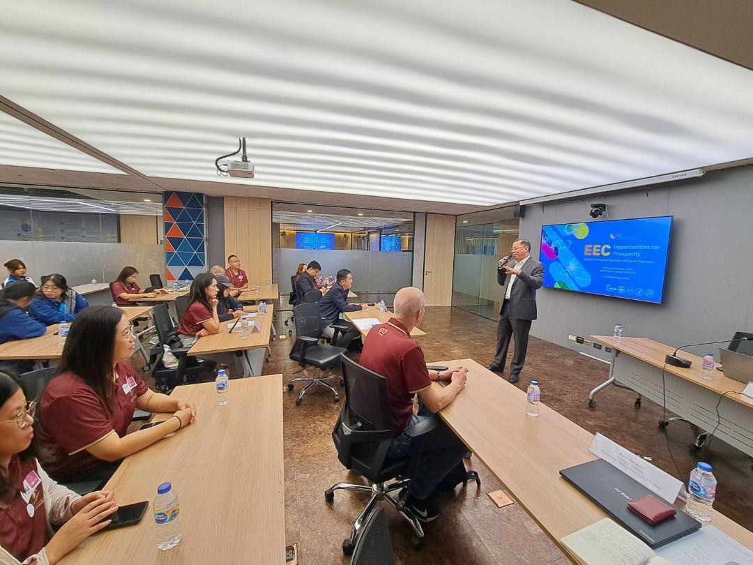 โดยผู้เข้าร่วมได้รับฟังการบรรยายสรุปเกี่ยวกับภารกิจของ สกพอ. ในการสนับสนุนและพัฒนาอุตสาหกรรมเป้าหมาย อาทิ ยานยนต์สมัยใหม่ อิเล็กทรอนิกส์อัจฉริยะ การแพทย์ครบวงจร และอุตสาหกรรม BCG รวมถึงโครงการโครงสร้างพื้นฐานที่สำคัญ เช่น ท่าเรือน้ำลึก รถไฟความเร็วสูงเชื่อมสามสนามบิน สนามบินอู่ตะเภา และเมืองอัจฉริยะ ซึ่งล้วนมีเป้าหมายเพื่อยกระดับคุณภาพชีวิตของประชาชน และส่งเสริมการลงทุนจากนานาประเทศ
