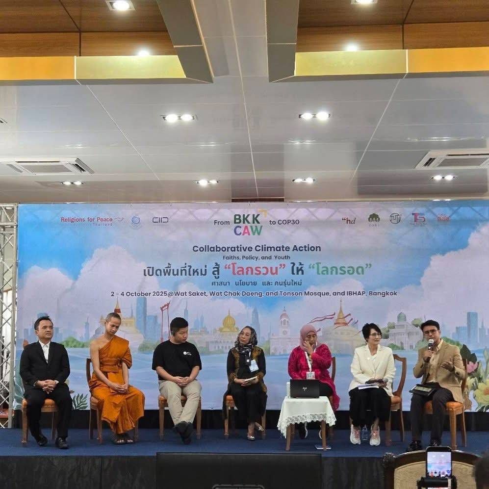 กิจกรรม “เปิดพื้นที่ใหม่ สู้โลกรวน ให้โลกรอด: ศาสนา นโยบาย และคนรุ่นใหม่ From BKKCAW 25 to COP30” จัดขึ้นในวันที่ 2-4 ตุลาคม 2568 เกิดจากความร่วมมือของ ศาสนาเพื่อสันติภาพ ประเทศไทย, มูลนิธิสถาบันการจัดการวิถีพุทธเพื่อสุขและสันติ (มูลนิธิ สกพ.), สถาบันธรรมรัฐเพื่อการพัฒนาสังคมและสิ่งแวดล้อม,The International Dialogue Centre – KAICIID, Centre for Humanitarian Dialogue (HD Centre), และJust Transitions Incubator (JUTI) เพื่อเชิญกลุ่มศาสนา ชุมชนทางจิตวิญญาณ รัฐบาล ภาคประชาสังคม สถาบันการศึกษา เยาวชน และพันธมิตรภาคเอกชน ประกาศเจตนารมย์ ร่วมเดินทางทางจริยธรรมและสิ่งแวดล้อมนี้ไปด้วยกัน เพื่อสร้างความร่วมมือในระดับภูมิภาคมากยิ่งขึ้น ยกระดับเสียงของชุมชนทางจิตวิญญาณในการประชุม COP30 และในครั้งต่อๆ ไป พร้อมทั้งมีส่วนร่วมในกระบวนการ Global Ethical Stocktake ด้วยความมุ่งมั่นร่วมกันสร้างความร่วมมือของทุกภาคส่วนเพื่อเผชิญความท้าทายจากสภาพภูมิอากาศ
