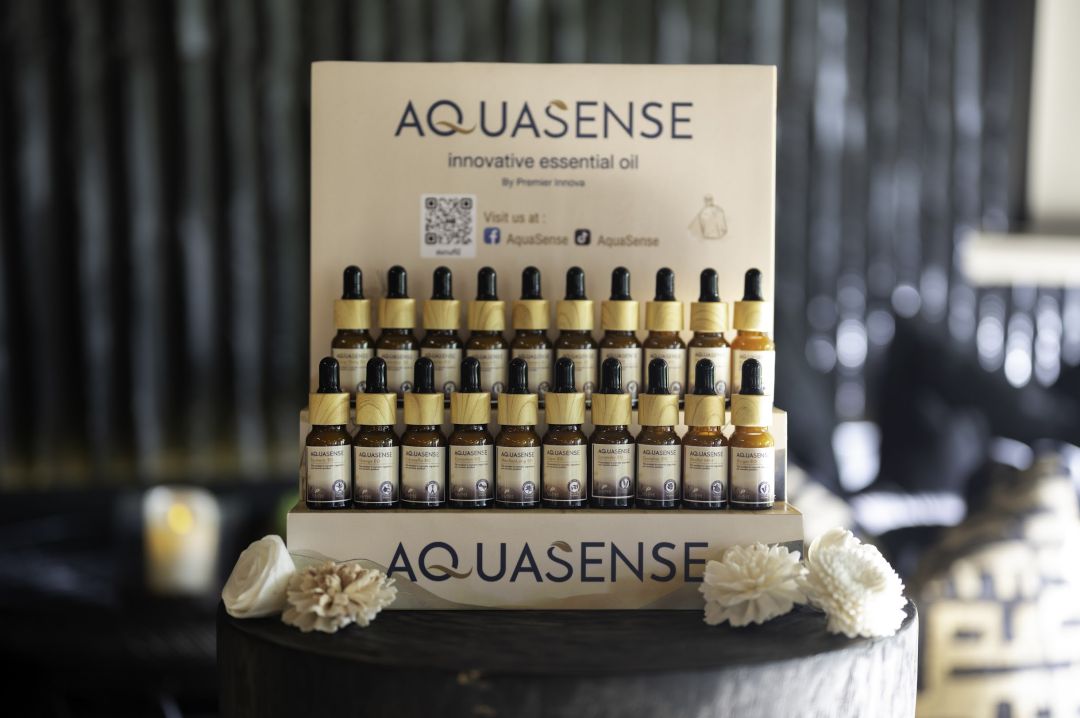 น้ำมันหอมระเหย AquaSense วิจัยและคิดค้นโดย ดร. ธีรพงศ์ ยะทา ผู้เชี่ยวชาญด้านระบบนำส่งระดับนาโนเพื่อเพิ่มประสิทธิภาพและความแม่นยำในการนำส่งยา วัคซีน ชีววัตถุ และสารสกัดสมุนไพร ได้นำเทคโนโลยี Nanoencapsulation มาพัฒนาสูตรน้ำมันหอมระเหย (Essential Oil) นวัตกรรมใหม่ ในรูปแบบ “เนื้อน้ำนม” ที่สามารถละลายน้ำได้ทันที ซึมซาบสู่ผิวรวดเร็วโดยไม่เหนียวเหนอะหนะ ปลอดภัยแม้ผิวบอบบางแพ้ง่าย พร้อมกลิ่นหอมเอกลักษณ์จากธรรมชาติ