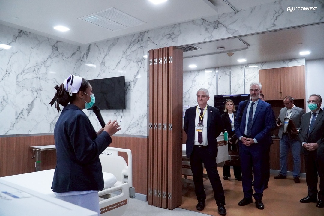 จากนั้น คณะฯ ยังได้เยี่ยมชมการดำเนินงานทางการแพทย์ของมหาวิทยาลัย ณ โรงพยาบาลสงขลานครินทร์เวชวิวัฒน์ ซึ่งเป็นส่วนหนึ่งใน “บริการพิเศษ / Premium Services” ของโรงพยาบาลสงขลานครินทร์ โดยมุ่งเน้นการให้บริการที่มีคุณภาพสูง ระดับบริการพิเศษแก่ผู้ป่วยที่ต้องการสิ่งอำนวยความสะดวกและการดูแลเป็นพิเศษ เป็นสถาบันการแพทย์ที่ให้บริการ Health Care Service ครอบคลุมด้านการรักษาพยาบาล การฟื้นฟู การส่งเสริมสุขภาพ และการป้องกันโรค เป็นช่องทางการรับบริการสุขภาพให้แก่ผู้ป่วยที่มีศักยภาพด้านการเงินได้รับการรักษาพยาบาลอย่างรวดเร็ว และมีคุณภาพตามมาตรฐานสากล และเป็นต้นแบบสำหรับการบริหารจัดการแบบ privatization ของโรงพยาบาลรัฐบาลในพื้นที่ภาคใต้
