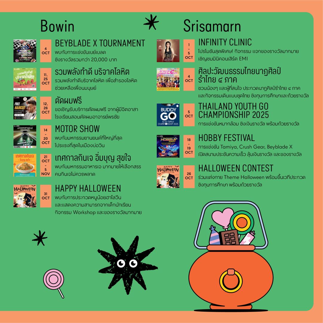 โรบินสันไลฟ์สไตล์ บ่อวิน วันที่ 31 ต.ค. 68 สนุกส่งท้ายเดือนกับกิจกรรม “HAPPY HALLOWEEN” พบกับการประกวดหนูน้อยฮาโลวีนสุดน่ารัก พร้อมการแสดงความสามารถจากเด็กนักเรียน กิจกรรมเวิร์กช็อป และของรางวัลมากมาย