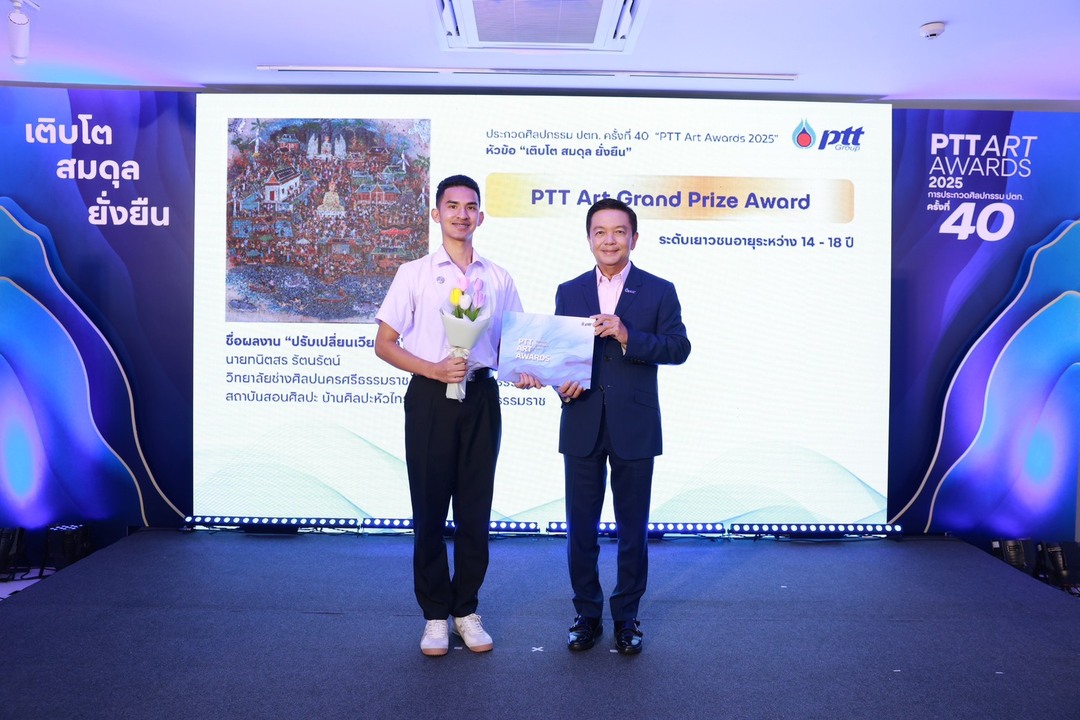 วานนี้ ( 7 ตุลาคม 2568) - ดร.คงกระพัน อินทรแจ้ง ประธานเจ้าหน้าที่บริหารและกรรมการผู้จัดการใหญ่ บริษัท ปตท.จำกัด (มหาชน) (ปตท.) เป็นประธานในพิธีมอบรางวัลแก่ผู้ชนะการประกวดศิลปกรรม ปตท. ครั้งที่ 40 “PTT Art Awards” จำนวน 40 รางวัล จากการคัดเลือกและตัดสินโดยคณะกรรมการผู้ทรงคุณวุฒิด้านศิลปะในแขนงต่าง ๆ ซึ่งในปีนี้ มีศิลปินสนใจร่วมส่งผลงานเข้าประกวดในประเภทจิตรกรรม ประติมากรรม ภาพพิมพ์ สื่อผสม ดิจิทัลอาร์ต 2 มิติ และทัศนศิลป์อื่น ๆ รวมกันจำนวนมากกว่า 900 ชิ้น