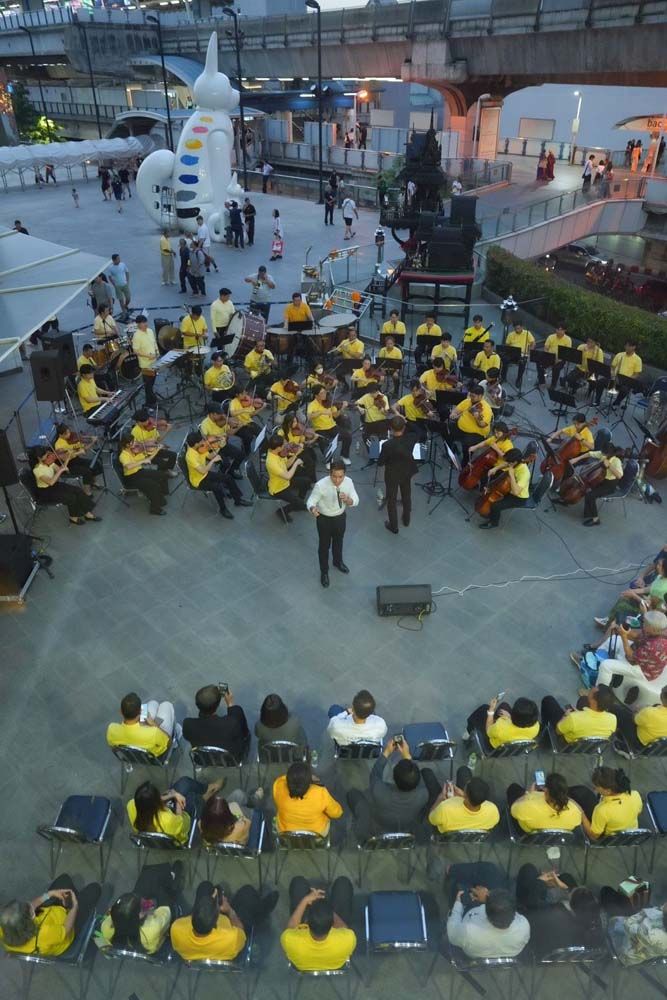 โดยการบรรเลงของ วงดุริยางค์กรุงเทพมหานคร Bangkok Metropolitan Orchestra หรือ BMO อำนวยเพลง โดย สรพจน์ วรแสง พร้อมด้วยศิลปินรับเชิญ พัทธนันท์ อาจองค์ และ กองปราบ ปณิธาน จวงครุฑ ที่มาร่วมถ่ายทอดบทเพลงพระราชนิพนธ์ และบทเพลงอันทรงคุณค่า ณ บริเวณลานสกาย วอล์ค ชั้น 2 ศูนย์การค้าเอ็ม บี เค เซ็นเตอร์
