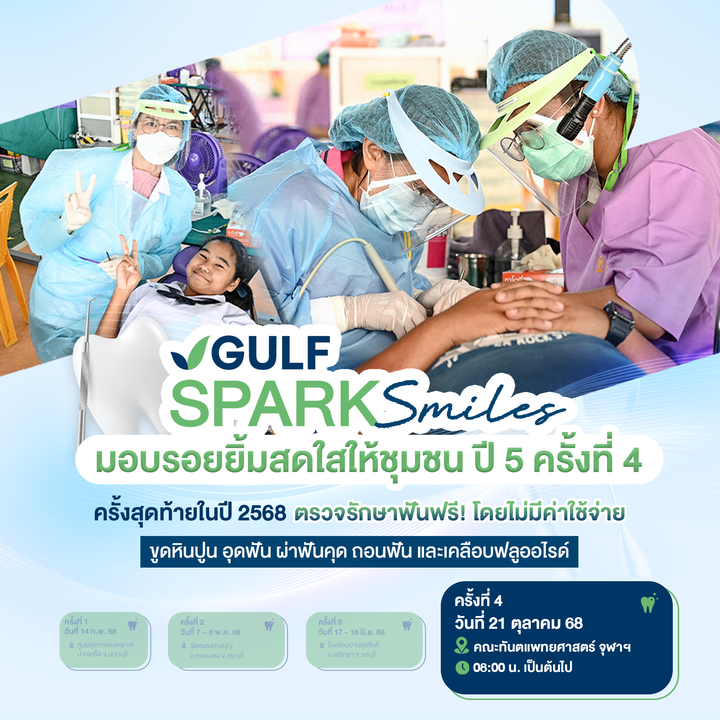 บริษัท กัลฟ์ ดีเวลลอปเมนท์ จำกัด (มหาชน) หรือ GULF ร่วมกับ คณะทันตแพทยศาสตร์ จุฬาลงกรณ์มหาวิทยาลัย เดินหน้าสานต่อเจตนารมณ์ในการส่งเสริมสุขภาพช่องปากของคนไทย จัดกิจกรรมหน่วยทันตกรรมเคลื่อนที่ "GULF Sparks Smiles มอบรอยยิ้มสดใสให้ชุมชน" ปี 5 หน่วยที่ 4 อย่างยิ่งใหญ่ เนื่องใน "วันทันตสาธารณสุขแห่งชาติ" ซึ่งตรงกับวันที่ 21 ตุลาคมของทุกปี จัดขึ้น ณ คณะทันตแพทยศาสตร์ จุฬาลงกรณ์มหาวิทยาลัย โดยเตรียมความพร้อมเพื่อรองรับประชาชนและผู้ที่ขาดโอกาสในการเข้าถึงบริการทันตกรรมได้มากถึง 1,200 คน ซึ่งนับเป็นความมุ่งมั่นของกัลฟ์ที่ต้องการยกระดับคุณภาพชีวิตและมอบโอกาสในการมีสุขภาพช่องปากที่ดีอย่างเท่าเทียมและทั่วถึง นอกจากนี้ยังเป็นพื้นที่เรียนรู้นอกห้องเรียนให้กับเยาวชนที่สนใจในอาชีพทันตแพทย์อีกด้วย