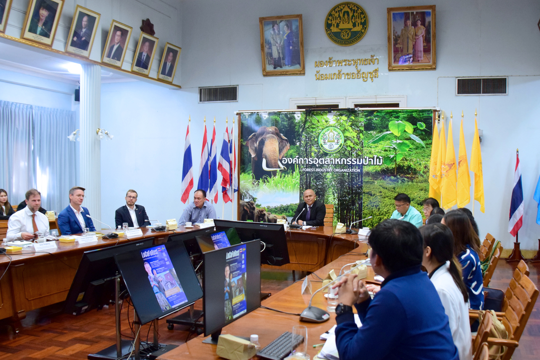 ล่าสุด เมื่อวันที่ 14 ตุลาคม 2568 องค์การอุตสาหกรรมป่าไม้ (อ.อ.ป.) โดยนายถนอมศักดิ์ เฉียบแหลม รองผู้อำนวยการองค์การอุตสาหกรรมป่าไม้ ให้การต้อนรับผู้เชี่ยวชาญจากสวีเดน และผู้เข้าอบรมโครงการ “อบรมบริหารจัดการป่าไม้อย่างยั่งยืนสู่พลังชุมชนท้องถิ่น” (LoCoFoRest : Locally Controlled Forest Restoration Program) รุ่นที่ 5 ซึ่งทีมประเทศไทย ประกอบด้วย ตัวแทนจาก อ.อ.ป. และกรมป่าไม้ รวมจำนวน 5 คน และในโอกาสเดียวกันนี้ รอง ผอ.อ.อ.ป. ยังได้ให้เกียรติเป็นประธานเปิดการประชุมเชิงปฏิบัติ (Workshop) และร่วมประชุมภายใต้โครงการ LoCoFoRest ร่วมกับคณะฯ โดยมี นายวิรัติปรากฏดี ผู้อำนวยการสำนักองค์การอุตสาหกรรมป่าไม้ภาคกลาง และนายไพรรัตน์ ครุฑวิสัย ผู้อำนวยการสำนักธุรกิจคาร์บอนและนวัตกรรม ได้ร่วมกันนำเสนอวิสัยทัศน์ พันธกิจ และการดำเนินงาน รวมถึงกิจกรรมต่างๆ ของ อ.อ.ป. ให้กับผู้เชี่ยวชาญจากสวีเดน และคณะผู้เข้าอบรมโครงการ LoCoFoRest ได้รับทราบข้อมูลก่อนการลงพื้นที่เพื่อศึกษาดูงานในภาคสนามของ อ.อ.ป. อาทิ ส่วนพัฒนาธุรกิจและอุตสาหกรรมไม้ วังน้อย ออป.กลาง , สวนป่าแม่เมาะ /โรงเลื่อยแม่เมาะ จังหวัดลำปาง และ ส.คช.
