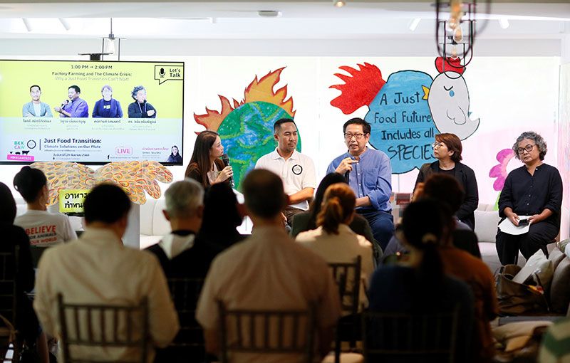 องค์กรพิทักษ์สัตว์แห่งโลก ประเทศไทย (World Animal Protection Thailand) ร่วมกับเครือข่ายพันธมิตร จัดเวทีเสวนา “Just Food Transition: Climate Solutions on Our Plate” ณ โรงแรม ASAI Bangkok Sathorn ภายใต้งาน Bangkok Climate Action Week เพื่อเตือนสังคมว่าระบบฟาร์มเชิงอุตสาหกรรม คือหนึ่งในตัวการหลักที่ผลักโลกเข้าสู่วิกฤตภูมิอากาศ และหากยังคงเพิกเฉยต่อการเปลี่ยนผ่านระบบอาหารที่เป็นธรรม การแก้ไขปัญหาวิกฤติโลกร้อน จะไม่มีทางบรรลุผล ขณะเดียวกัน Bangkok Climate Action Week เองก็มุ่งสร้างระบบนิเวศการลงมือทำด้านสภาพภูมิอากาศที่ยึดประชาชนเป็นศูนย์กลาง เปิดพื้นที่ให้ทุกภาคส่วนเชื่อมโยงกัน และสร้างผลลัพธ์เชิงนโยบายหรือแนวทางปฏิบัติที่จับต้องได้ พร้อมยกระดับกรุงเทพฯ ให้เป็นศูนย์กลางการเรียนรู้และต้นแบบการเปลี่ยนแปลงในภูมิภาค