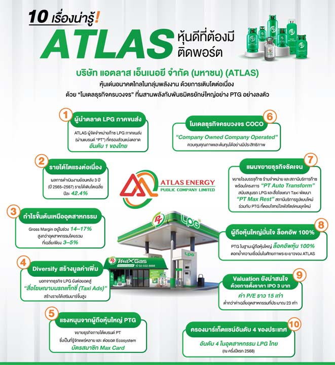 บริษัท แอตลาส เอ็นเนอยี จำกัด (มหาชน) (ATLAS) หุ้นเด่นอนาคตไกลในกลุ่มพลังงาน ด้วยการเติบโตต่อเนื่อง “โมเดลธุรกิจครบวงจร” ที่ผสานพลังกับพันธมิตรยักษ์ใหญ่อย่าง PTG อย่างลงตัว