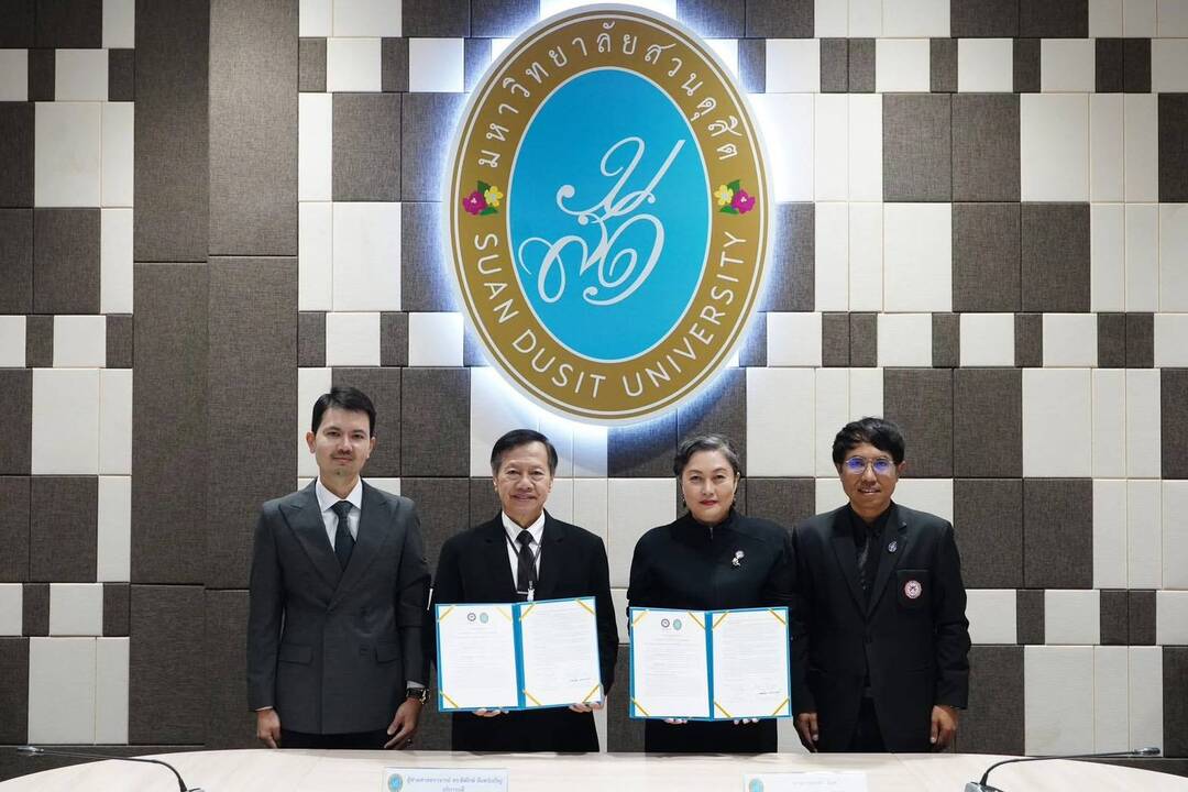 วันที่ 29 ตุลาคม 2568 ณ มหาวิทยาลัยสวนดุสิต สถาบันคุณวุฒิวิชาชีพ (องค์การมหาชน) หรือ สคช. โดย นางสาวจุลลดา มีจุล ผู้อำนวยการสถาบันคุณวุฒิวิชาชีพ และ มหาวิทยาลัยสวนดุสิต หรือ มสด. โดย ผู้ช่วยศาสตราจารย์ ดร.พิทักษ์ จันทร์เจริญ อธิการบดีมหาวิทยาลัยสวนดุสิต ได้ลงนามในบันทึกความเข้าใจความร่วมมือ (MOU) เรื่อง การส่งเสริมและการพัฒนากำลังคนผ่านระบบคุณวุฒิวิชาชีพ และระบบ E-Workforce Ecosystem ตั้งเป้าเชื่อมโยงระบบคุณวุฒิวิชาชีพกับระบบคุณวุฒิทางการศึกษา เพื่อร่วมกันขับเคลื่อนการพัฒนากำลังคนให้มีสมรรถนะตรงตามความต้องการของตลาดแรงงาน และสร้างระบบการเรียนรู้ตลอดชีวิตให้เกิดขึ้นอย่างเป็นรูปธรรม