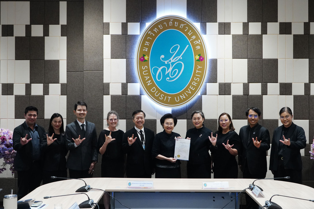 และในโอกาสเดียวกันนี้ สคช.ยังได้มอบหนังสือรับรองหลักสูตรที่มีความสอดคล้องตามมาตรฐานอาชีพ ซึ่งเป็นหลักสูตรนำร่องแก่มหาวิทยาลัยสวนดุสิต ในหลักสูตรประกาศนียบัตรบัณฑิต สาขาวิชาล่ามภาษามือ หลักสูตรใหม่ พ.ศ. 2564 ด้วย โดยนัก ศึกษาที่สำเร็จระดับปริญญาตรีในหลักสูตรดังกล่าว จะได้รับประกาศนียบัตรคุณวุฒิวิชาชีพ อาชีพล่ามภาษามือ ระดับ 4 ส่วนผู้ที่ประกอบอาชีพล่ามภาษามืออยู่แล้ว และมีประกาศนียบัตรคุณวุฒิวิชาชีพระดับ 4 ก็สามารถนำมาเทียบโอนหน่วยกิตเข้าสู่ภาคการศึกษาได้ จำนวน 12 หน่วยกิต อีกด้วย