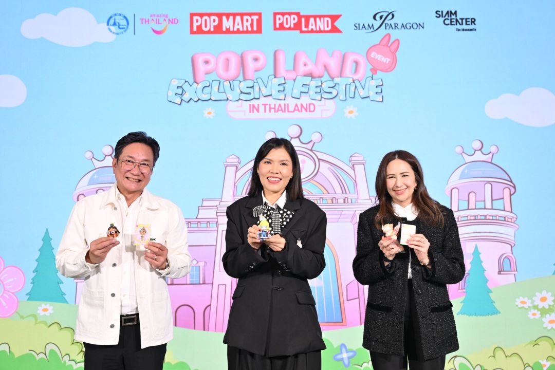 POP MART THAILAND ภายใต้การบริหารของ POP MART INTERNATIONAL ผู้ผลิตและจัดจำหน่ายอาร์ตทอยส์รายใหญ่ระดับโลก นำโดย คุณศิริพร แผลงจันทึก Country General Manager บริษัท ป๊อป มาร์ท (ประเทศไทย) ร่วมกับ คุณอภิชัย ฉัตรเฉลิมกิจ รองผู้ว่าการด้านตลาดในประเทศ การท่องเที่ยวแห่งประเทศไทย (ททท.) และ คุณธณพร ตันติยานนท์ กรรมการผู้จัดการ ผู้บริหารศูนย์การค้าสยามพารากอน เตรียมเปิดตัวอีเวนต์ “POP LAND EXCLUSIVE FESTIVE EVENT IN THAILAND” อย่างเป็นทางการ ผ่านงานแถลงข่าว “POP LAND PRESS PRESENTATION”