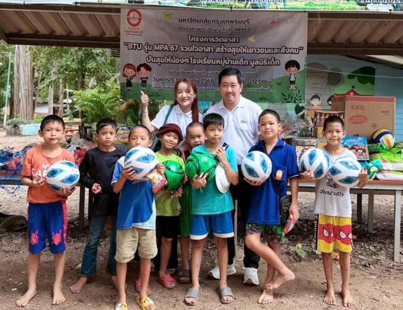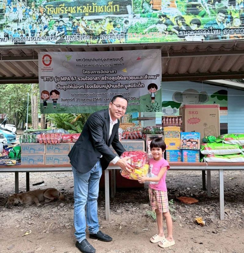 เมื่อวันที่ 31 ตุลาคม 2568 ที่โรงเรียนหมู่บ้านเด็ก มูลนิธิเด็ก อาจารย์ดร.พิมพ์กมล เกตุแก้ว นำคณะนักศึกษารัฐศาสตร์ ปริญญาโท หลักสูตรรัฐประศาสนศาสตรมหาบัณฑิต รุ่น MPA67 มหาวิทยาลัยกรุงเทพธนบุรี โดยมีนายบุณยศักฏ์ บุณยศิริเลิศ ประธานรุ่นและประธานกรรมการ บริษัท อวิยแอดไวซ์ จำกัด, นายสุปรีชา บุญประเสริฐ ผู้อำนวยการโครงการทุนสื่อมวลชน,ผู้ช่วยสมาชิกสภาผู้แทนราษฎร, นายสมชนก สันตินิยม กรรมการผู้จัดการ บริษัท เอ็นทีวายด์มัลติมีเดีย จำกัด, นายธีระศักดิ์ เจนสมบูรณ์สิน รองนายกเทศมนตรี เทศบาลตำบลหนองโพ จังหวัดราชบุรี และนางสาวนิตยา ศรีบุริทร์ กรรมการผู้จัดการ บริษัท เอ็นเอสซัคเซสโซลูชั่น จำกัด,นางสาวเฟื่องลดา อินดีสี,จ.ส.ต.ภูริ รุ่งวัฒนะกิจ ผบ.หมู่ กก.สส.ภ.จว.พระนครศรีอยุธยา พร้อมด้วยเพื่อน ๆ ร่วมรุ่นmpa67 จัดกิจกรรมจิตอาสา ณ โรงเรียนหมู่บ้านเด็ก มูลนิธิเด็ก จังหวัดกาญจนบุรี