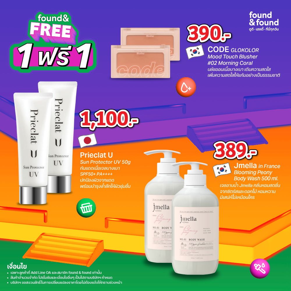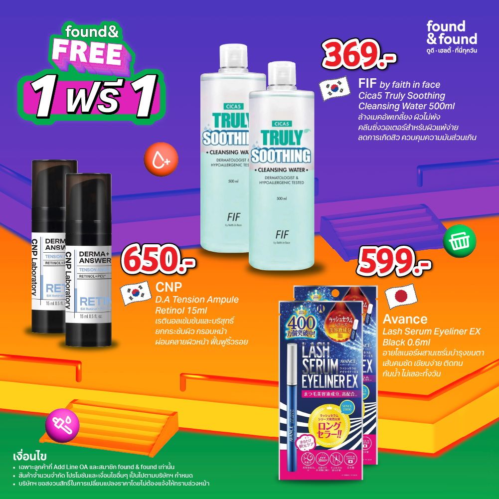 พบกับมหกรรมช้อปปิ้งโปรแรงกระแทกใจ! จะสายช้อป สายเหมา สายตุน สายคุ้ม! มารวมกันตรงนี้ เจอครบจบที่นี่ที่ found & found ยิ่งช้อปยิ่งคุ้มกับโปรปังแห่งปี found & free ซื้อ 1 แถม 1 ดีลสุดคุ้มที่มาพร้อมกับขบวนสินค้าราคาพิเศษ แหล่งรวมไอเทมเด็ดแบรนด์ดังส่งตรงจาก ญี่ปุ่น-เกาหลี ???????????????? ที่มีมาให้เลือกช้อปส่งท้ายปีก่อนใคร ทั้งสกินแคร์ เมคอัพ มาส์ก ครีมอาบน้ำ ยาสระผม และอื่นๆ อีกมากมายกว่า 1,000 รายการ