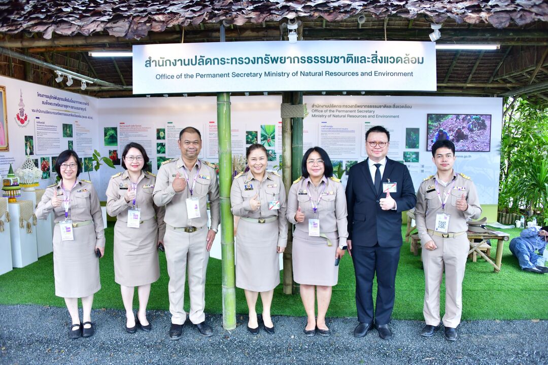 เมื่อวันที่ 4 พฤศจิกายน 2568 นายบรรณรักษ์ เสริมทอง เลขาธิการสำนักงานนโยบายและแผนทรัพยากรธรรมชาติและสิ่งแวดล้อม (สผ.) มอบหมายให้ นางสาวกานดา ชูแก้ว รองเลขาธิการ สผ. เข้าร่วมเฝ้าทูลละอองพระบาทสมเด็จพระกนิษฐาธิราชเจ้า กรมสมเด็จพระเทพรัตนราชสุดาฯ สยามบรมราชกุมารี ในพิธีเปิดการประชุมวิชาการและนิทรรศการ ครั้งที่ 12 ทรัพยากรไทย: หวนดูทรัพย์สิ่งสินตน ณ อาคารศูนย์กีฬาเฉลิมพระเกียรติ มหาวิทยาลัยแม่โจ้ จังหวัดเชียงใหม่ พร้อมด้วยนางกตัญชลี ธรรมกุล ผู้อำนวยการกองจัดการความหลากหลายทางชีวภาพ สผ. และเจ้าหน้าที่จากกองจัดการความหลากหลายทางชีวภาพ กองบริหารกองทุนสิ่งแวดล้อม และกลุ่มงานอำนวยการและประชาสัมพันธ์ สำนักงานเลขานุการกรม ร่วมเฝ้ารับเสด็จ ณ บูธนิทรรศการ