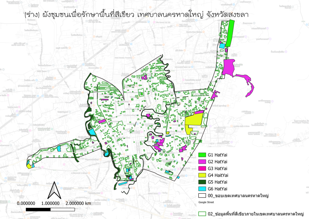 5. ร่วมกับเทศบาลในการนำข้อมูลพื้นที่สีเขียวประเภทต่าง ๆ ที่จัดเก็บในระบบฐานข้อมูล TGU มาจัดทำเป็นผังชุมชนเพื่อรักษาพื้นที่สีเขียว และกำหนดพื้นที่ที่มีศักยภาพในการพัฒนาเป็นพื้นที่สีเขียวสาธารณะ อาทิ เทศบาลตำบลทับมา จังหวัดระยอง และเทศบาลนครหาดใหญ่ จังหวัดสงขลา