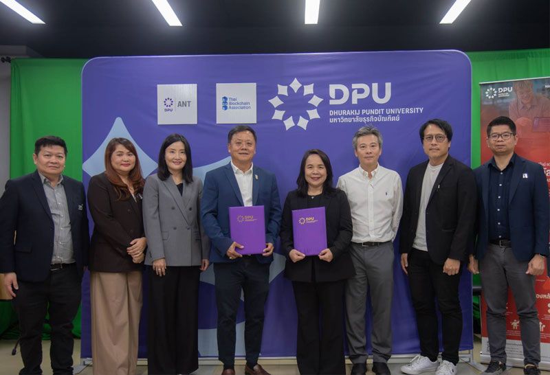 วิทยาลัยครีเอทีฟดีไซน์ แอนด์ เอ็นเตอร์เทนเมนต์ เทคโนโลยี มหาวิทยาลัยธุรกิจบัณฑิตย์ (DPU) ลงนามบันทึกข้อตกลงความร่วมมือกับ สมาคมไทยบล็อกเชน เพื่อขับเคลื่อนการพัฒนาองค์ความรู้และเสริมศักยภาพบุคลากรไทยในยุคดิจิทัล ผ่านการ ออกแบบหลักสูตร–การอบรม–การวิจัย และการถ่ายทอดเทคโนโลยีด้าน Blockchain, AI, IoT , Automation , GAME และ Digital Art สู่การเรียนรู้ในห้องเรียนและการประยุกต์ใช้ในชุมชนอย่างยั่งยืน โดยความร่วมมือครั้งนี้มีเป้าหมายเพื่อสร้าง บัณฑิต นักพัฒนา และผู้บริหารยุคดิจิทัล ที่มีทั้งความรู้เชิงเทคนิค ความเข้าใจผลกระทบทางสังคม และคุณธรรมจริยธรรม พร้อมสามารถประยุกต์ใช้เทคโนโลยีดิจิทัลขับเคลื่อนองค์กรได้จริงในโลกยุคใหม่
