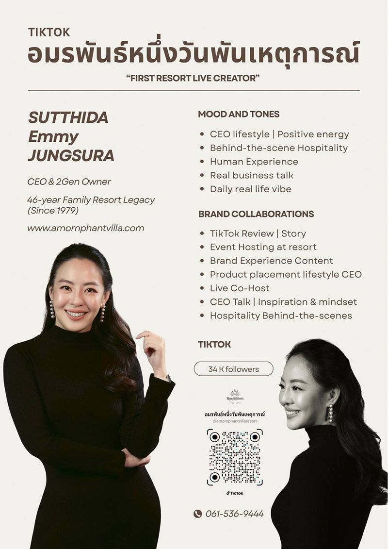 เอมมี่เผยว่า “ถึงเวลาแล้วที่รีสอร์ทไทยจะไม่ได้เป็นแค่สถานที่พัก แต่เป็นพื้นที่ที่สร้างผลงาน สร้างรายได้ และสร้างแรงบันดาลใจให้ผู้คนมาร่วมเปลี่ยนโฉมรีสอร์ทไทย…สู่ยุคใหม่ของ Creator ไปด้วยกัน”
