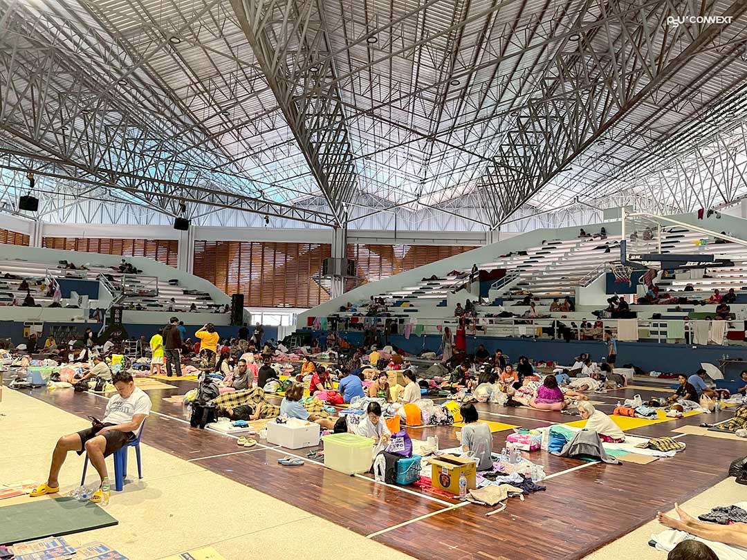 ศูนย์พักพิงสามารถรองรับผู้ประสบภัยได้จำนวนมาก และมีประชาชนทยอยเข้าพักอย่างต่อเนื่องตั้งแต่เริ่มเปิดดำเนินการ โดยภายในพื้นที่มีการจัดแบ่งโซนที่พัก การบริการอาหารปรุงสุก น้ำดื่ม และพื้นที่บริการขั้นพื้นฐานอื่น ๆ ตามมาตรฐานศูนย์พักพิง ทั้งยังมีบุคลากรทางการแพทย์จากโรงพยาบาลสงขลานครินทร์ และอาสาสมัครจากหลายหน่วยงานของมหาวิทยาลัยประจำตลอด 24 ชั่วโมง เพื่อให้การดูแลด้านสุขภาพและเหตุฉุกเฉินสามารถดำเนินการได้ทันที