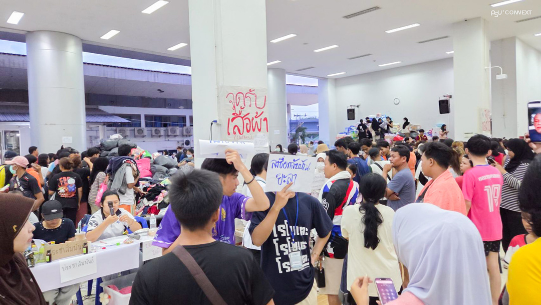 คณะผู้บริหาร บุคลากร อาจารย์ นักศึกษา และเครือข่ายอาสาสมัครร่วมทำงานตลอด 24 ชั่วโมง เพื่อให้ศูนย์พักพิงดำเนินงานได้อย่างต่อเนื่อง ท่ามกลางสถานการณ์น้ำท่วมที่เปลี่ยนแปลงตลอดเวลา การทำงานเชิงรุกตั้งแต่การตรวจคัดกรองสุขภาพ การลงทะเบียนผู้พักพิง ไปจนถึงการจัดการความต้องการเฉพาะด้านของผู้สูงอายุ เด็กเล็ก และผู้พิการ สะท้อนความพร้อมของมหาวิทยาลัยในการรับมือวิกฤตและสนับสนุนชุมชนโดยรอบ