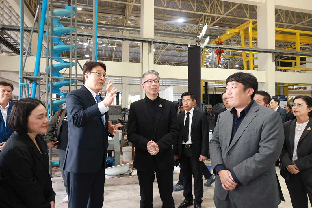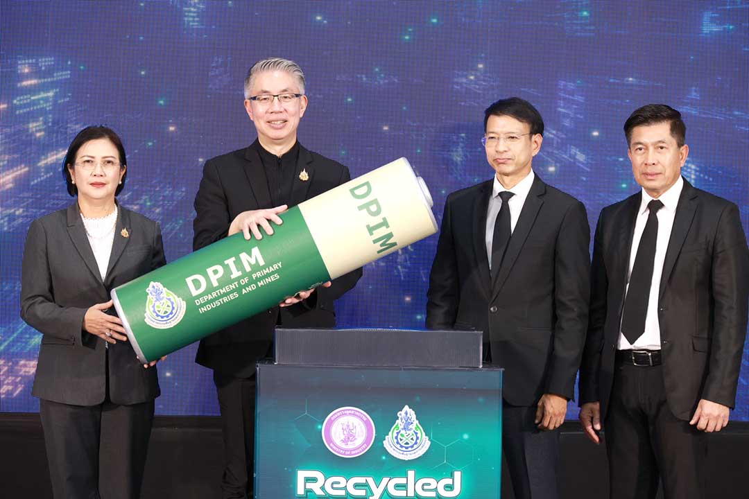 เป็นที่น่ายินดีเป็นอย่างยิ่งที่ในปีนี้ กพร. ประสบความสำเร็จในการพัฒนา “ต้นแบบแบตเตอรี่ EV จากการรีไซเคิล” ได้สำเร็จเป็นครั้งแรก ซึ่งจะช่วยให้ กพร. เป็น “ศูนย์การเรียนรู้ด้านเทคโนโลยีรีไซเคิลแบตเตอรี่ยานยนต์ไฟฟ้า” เพื่อรองรับการเติบโตของอุตสาหกรรมยานยนต์ไฟฟ้าและการจัดการแบตเตอรี่ยานยนต์ไฟฟ้าใช้งานแล้วที่จะมีปริมาณเพิ่มขึ้นจากหลักพันตันต่อปีเป็นหลักหมื่นตันต่อปี ภายในระยะ 5-6 ปีข้างหน้า ซึ่งเป็นกลไกสำคัญในการส่งเสริมอุตสาหกรรมศักยภาพแห่งอนาคต (S-Curve) ของไทย และขับเคลื่อนเศรษฐกิจของประเทศไปสู่เศรษฐกิจหมุนเวียนและสังคมคาร์บอนต่ำของรัฐบาล โดยงานในวันนี้ได้ปลดล็อกเส้นทางสู่เศรษฐกิจหมุนเวียน ทั้งด้านเทคโนโลยีที่พร้อมต่อยอดสู่เชิงพาณิชย์ และด้านการบริหารจัดการทั้งระบบที่เชื่อมโยงเครือข่ายทางธุรกิจตลอดห่วงโซ่คุณค่า พร้อมถ่ายทอดองค์ความรู้เพื่อส่งเสริมการใช้ทรัพยากรอย่างยั่งยืน และเน้นย้ำว่าสิ่งสำคัญของเศรษฐกิจหมุนเวียน คือ ความร่วมมือที่ทุกฝ่ายได้ประโยชน์ ทั้งผู้ผลิต สิ่งแวดล้อม สังคม และเศรษฐกิจโดยรวม