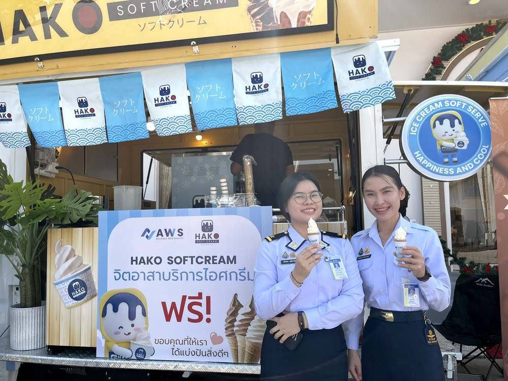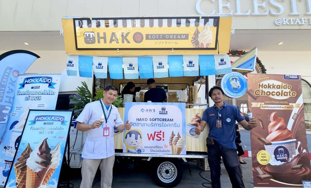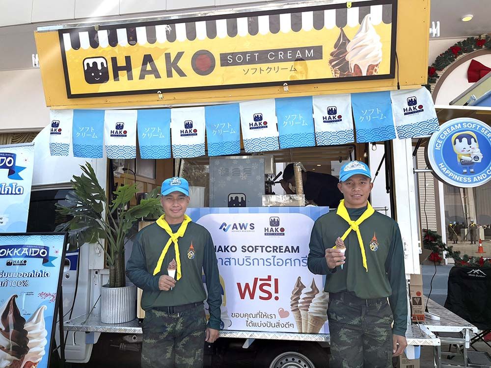 HAKO SOFT CREAM แบรนด์ไอศกรีมซอฟต์เสิร์ฟเกรดพรีเมียม ภายใต้ บริษัท แอดวานซ์ เว็บ เซอร์วิส จำกัด (มหาชน) เดินหน้าสานต่อพันธกิจร่วมเป็นอีกหนึ่งพลังภาคเอกชนในการสนับสนุนภารกิจบรรเทาทุกข์ผู้ประสบอุทกภัยในพื้นที่ภาคใต้ ผ่านกิจกรรม “มอบความสดชื่น ส่งต่อกำลังใจ” ด้วยการแจกไอศกรีมซอฟต์เสิร์ฟจากนมสด 100% รส นมฮอกไกโดมิล และ ช็อกโกแลตมิล ให้แก่จิตอาสาและกำลังพลจาก กองทัพอากาศ ที่มาร่วมแรง ร่วมใจปฏิบัติภารกิจคัดแยก บรรจุ และขนย้ายสิ่งของที่ได้รับบริจาคจากหน่วยงานภาครัฐ เอกชน และประชาชนทั่วไป เพื่อนำไปส่งต่อความช่วยเหลือและเยียวยาฟื้นฟูผู้ประสบภัยจากอุทกภัยหลังน้ำลด ในจังหวัดต่างๆ ของภาคใต้ ณ พิพิธภัณฑ์กองทัพอากาศและการบินแห่งชาติ เขตสายไหม–ดอนเมือง เมื่อวันที่ 1 ธันวาคม 2568 ที่ผ่านมา ท่ามกลางสภาพแดดที่ร้อนจัด กับภารกิจที่ต้องอาศัยพลังใจ ความอดทน และความเสียสละอย่างยิ่ง โดยกิจกรรมดังกล่าวจัดขึ้นเพื่อแสดงความขอบคุณต่อความทุ่มเทของจิตอาสา ทหาร และเจ้าหน้าที่ทุกนาย พร้อมสร้างขวัญและกำลังใจในการปฏิบัติภารกิจอย่างต่อเนื่อง โดย HAKO SOFT CREAM ขอเป็นสื่อกลางในการส่งต่อกำลังใจ ช่วยคลายความเหนื่อยล้า และเติมพลังให้ผู้ปฏิบัติงานสามารถเดินหน้าภารกิจได้อย่างเข้มแข็ง