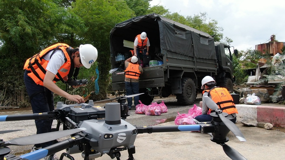 ในช่วงเวลาที่เกิดอุทกภัย ปตท.สผ. ได้ร่วมบรรเทาความเดือนร้อนให้กับผู้ประสบภัยอย่างเร่งด่วน โดยสนับสนุนเครื่องอุปโภคบริโภคต่าง ๆ เพื่อการยังชีพ เช่น อาหารแห้ง น้ำดื่ม และเครื่องใช้อื่น ๆ ลำเลียงไปกับเรือหลวงจักรีนฤเบศร รวมถึงสนับสนุนชุดเครื่องนอน ผ้าห่ม และเสื้อผ้า ให้แก่ศูนย์พักพิง มหาวิทยาลัยสงขลานครินทร์ นอกจากนี้ ในด้านการปฏิบัติงานเชิงเทคนิค ปตท.สผ. ได้ร่วมกับบริษัท เอไอ แอนด์ โรโบติกส์ เวนเจอร์ส จำกัด หรือ เออาร์วี ซึ่งเป็นบริษัทย่อย ส่งโดรนเพื่อการขนส่ง และโดรนเพื่อการสำรวจและเฝ้าระวัง พร้อมทั้งทีมผู้เชี่ยวชาญ เพื่อสนับสนุนภารกิจของศูนย์บรรเทาสาธารณภัย มณฑลทหารบกที่ 42 ให้สามารถเข้าถึงพื้นที่ที่ประสบปัญหาที่ยากต่อการเข้าถึงได้อย่างมีประสิทธิภาพมากยิ่งขึ้น