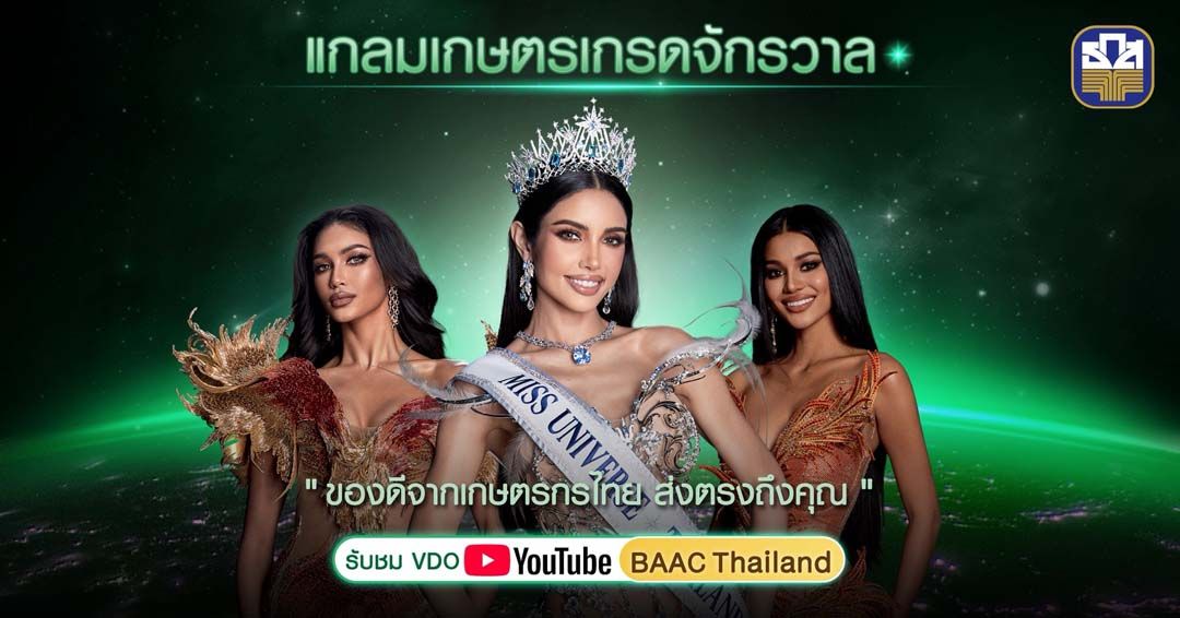 ธ.ก.ส.ชวนสัมผัสความงามระดับ "จักรวาล" กับวิดีโอแคมเปญ "แกลมเกษตร เกรดจักรวาล" ดึง 3 ท็อป จากเวที Miss Universe Thailand 2025 วีนา-ปวีนา ซิงห์ มิสยูนิเวิร์สไทยแลนด์ 2025, แพรว-แพรววณิชยฐ์ เรืองทอง รองอันดับ 1 Miss Universe Thailand 2025 และ เดล-นฤมล พิมพ์ภักดี รองอันดับ 2 มิสยูนิเวิร์สไทยแลนด์ 2025 ชี้เป้า! สินค้าแกลมเกษตร ผ่านคลิปวิดีโอโพรโมตสินค้าเกษตรที่ติดแกลม พัฒนาคุณภาพสู่เกรดจักรวาล ผ่าน Concept “แกลมเกษตร เกรดจักรวาล” สินค้าจากเกษตรกรไทยที่ไม่ใช่แค่ระดับโลก แต่เป็นระดับจักรวาล ที่เจิดจรัสในแบบของไทย โดยในเนื้อหาวีดีโอ นำเสนอสินค้าแกลมเกษตร เช่น กระเป๋า จากกระจูด แบรนด์วรรณี VARNI Craftstay , ผ้าบาติก จากแบรนด์ฅญาบาติก , เครื่องประดับไข่มุกแท้จากอันดามัน แบรนด์มุกสำสี นอกจากนี้ ยังมีการนำเสนอเมนูอาหารจากสินค้าของเกษตรกร ได้แก่ ข้าวอุ่นอิ่ม , ใบบัวบกทอดกรอบ จากบ้านหม่อมแช่ม , สินค้ามะนาวแปรรูป จาก Lemon Me Farm และ ก๋วยจั๊บอุบล และก๋วยเตี๋ยวพร้อมทานจากแบรนด์มาดามโซ่ เป็นต้น ซึ่งทั้งหมดเป็นแบรนด์สินค้าแกลมเกษตร จากลูกค้าที่ได้รับการสนับสนุนจาก ธ.ก.ส.