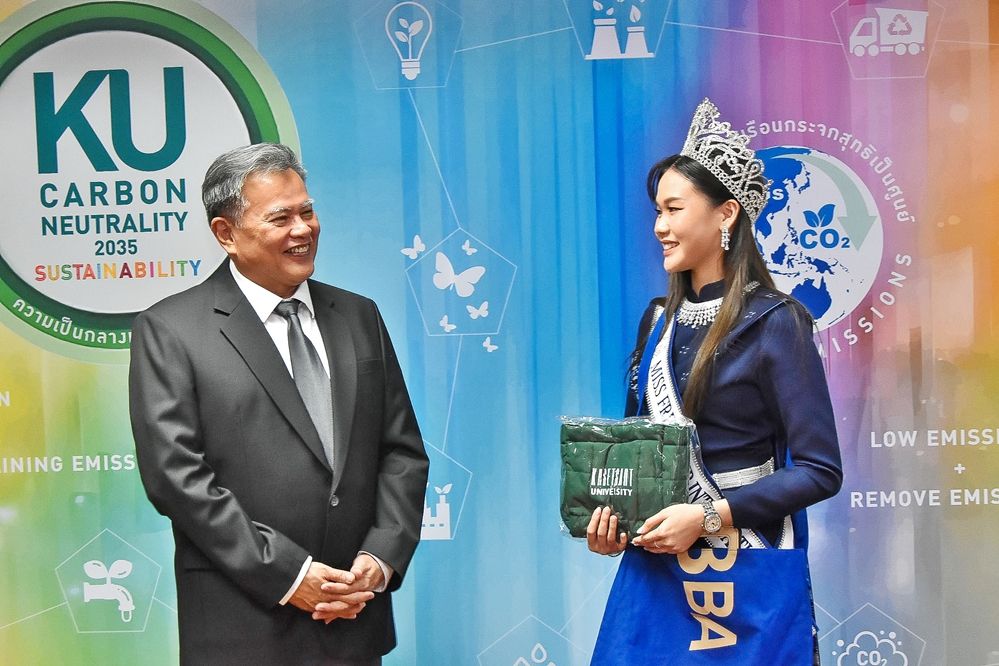 นางสาวชนกนันท์ โรจนสมิทธ์ (ธรี) นิสิตโครงการหลักสูตรบริหารธุรกิจบัณฑิต (หลักสูตรนานาชาติ – BBA KU) คณะบริหารธุรกิจ มหาวิทยาลัยเกษตรศาสตร์ ผู้คว้าตำแหน่ง รองชนะเลิศอันดับที่ 1 Miss Friendship International 2025 และรางวัลพิเศษระดับโลก ได้เข้าพบ ดร.ดำรงค์ ศรีพระราม รักษาการอธิการบดีมหาวิทยาลัยเกษตรศาสตร์