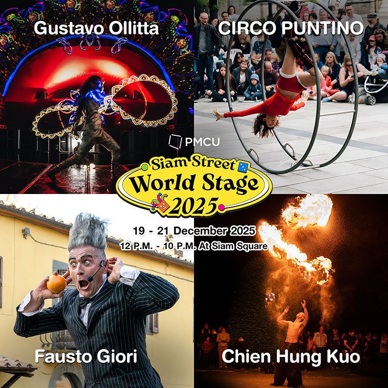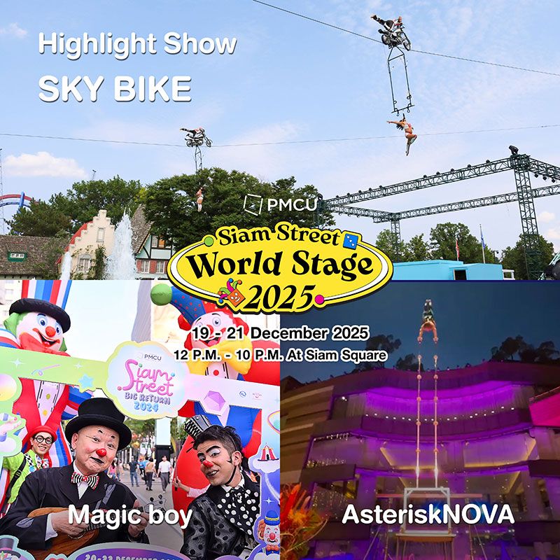 เสิร์ฟความสุขต่อเนื่องมาถึงปีที่ 9 แล้ว สำหรับมหกรรมรวมสุดยอดสตรีทโชว์จากทั่วทุกมุมโลก “Siam Street” โดยในปีนี้ สำนักงานจัดการทรัพย์สินจุฬาลงกรณ์มหาวิทยาลัย (PMCU) ร่วมกับ กระทรวงวัฒนธรรม กรมส่งเสริมวัฒนธรรม และบริษัท กรุงเทพเอ็กซิบิชั่น จำกัด (BEX) พร้อมทั้งภาครัฐและเอกชน กลับมาเปิดกระดานความสนุกครั้งใหม่ให้เต็มไปทั้งสยามสแควร์ กับงาน “PMCU Presents Siam Street World Stage 2025” ในปีนี้จัดขึ้นในคอนเซ็ปต์ "Board Game of Global Street Performance" เล่นใหญ่ระดับโลกด้วยการแสดงสุดว้าวและหาดูยาก ไม่ว่าจะเป็น Juggling, Acrobatics, Magic, Mime, Clowning และ Puppetry จากศิลปินสตรีทโชว์นานาประเทศ พร้อมจุด Check in มุมถ่ายรูปสุดปัง และกิจกรรมและเกมสุดมันส์ ที่จะเต็มอิ่ม ถูกใจ ทั้งสายคอนเทนต์ สายแชะ สายแดนซ์ ที่สำคัญงานนี้เปิดให้เข้าชมฟรี ไม่มีค่าใช้จ่าย ตลอด 3 วันเต็ม ระหว่างวันที่ 19 – 21 ธันวาคม 2568 ตั้งแต่เวลา 12:00 – 22:00 น. เต็มพื้นที่สยามสแควร์