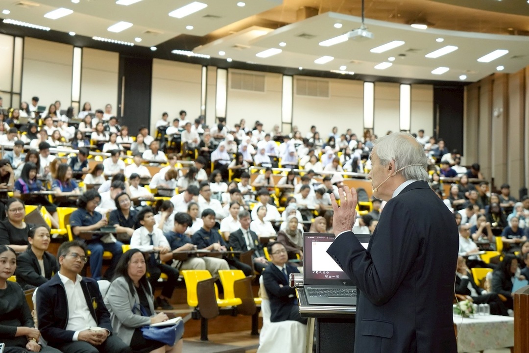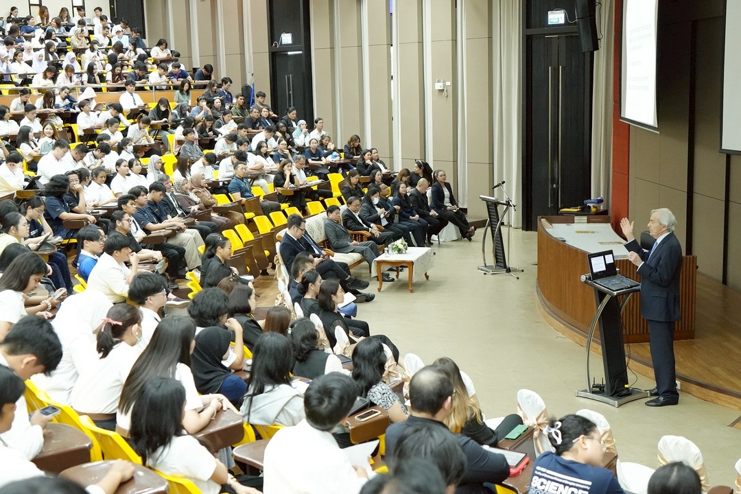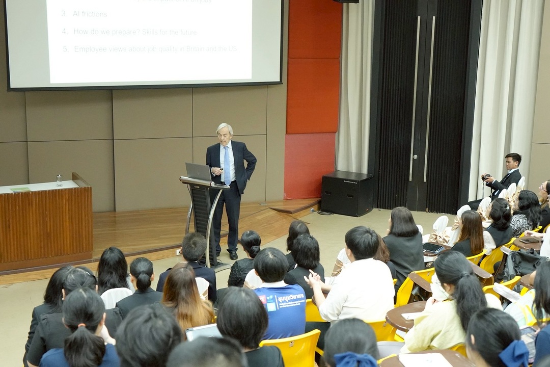 นอกจากนี้ หลังการบรรยาย ผู้ช่วยศาสตราจารย์ ดร.นิวัติ แก้วประดับ อธิการบดี ได้กล่าวแสดงความขอบคุณและชื่นชม Prof. Sir Christopher A. Pissarides ว่า การบรรยายในครั้งนี้เป็นแนวทางสำคัญในการทำความเข้าใจบทบาทของปัญญาประดิษฐ์อย่างรอบด้าน และเป็นแรงบันดาลใจในการขับเคลื่อนการพัฒนาด้านการศึกษา วิทยาศาสตร์ และเทคโนโลยีของประเทศ แม้งานจะสิ้นสุดลง แต่ภารกิจในการเรียนรู้และปรับตัวต่อ AI เพิ่งเริ่มต้น และจะเป็นเส้นทางที่ท้าทายแต่เปี่ยมด้วยโอกาสในระยะยาว