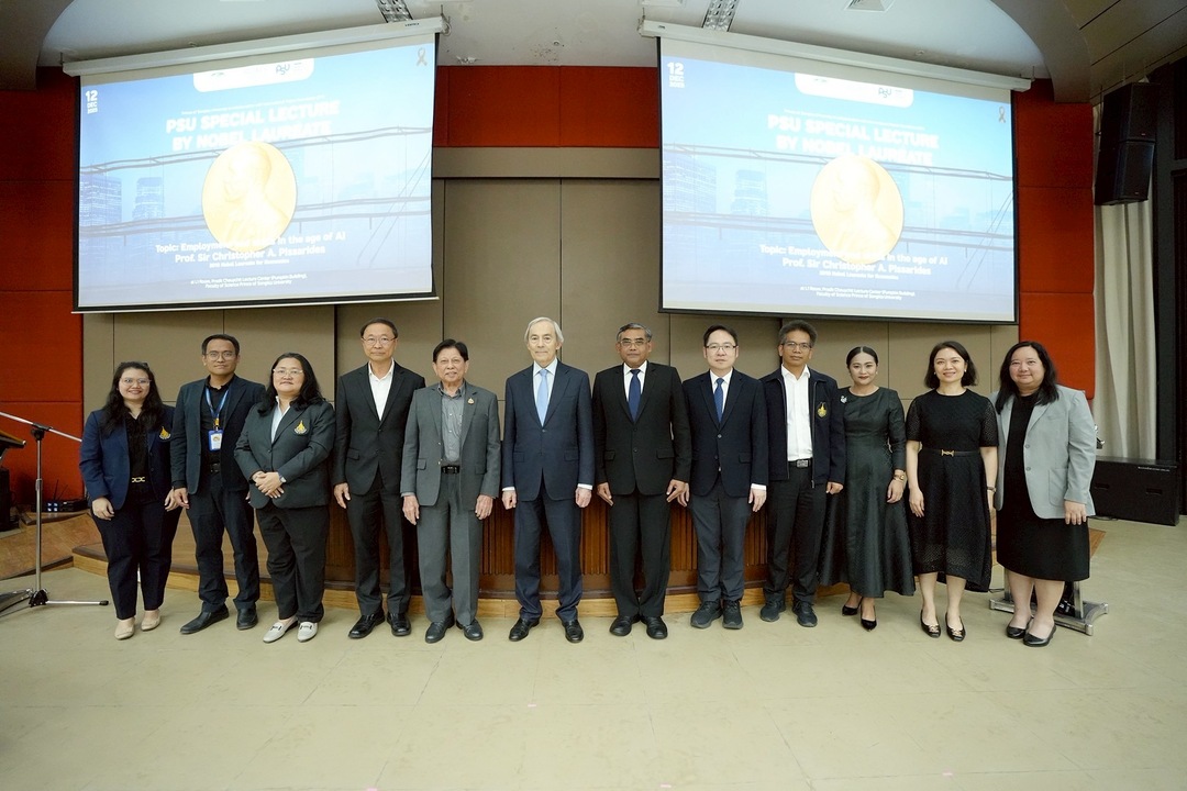 มหาวิทยาลัยสงขลานครินทร์ เปิดปาฐกถาพิเศษโดยผู้ได้รับรางวัลโนเบล สาขาเศรษฐศาสตร์ ปี 2010 Prof. Sir Christopher A. Pissarides ในหัวข้อ “Employment and Skills in the Age of AI” เพื่อส่งเสริมให้นักศึกษา และบุคลากรได้มีโอกาสในการแลกเปลี่ยนเรียนรู้กับนักวิชาการระดับโลก และสร้างแรงบันดาลใจให้กับนักศึกษาและบุคลากรในการต่อยอดองค์ความรู้สู่การวิจัย และการพัฒนาเชิงวิชาการของมหาวิทยาลัยสู่สากลต่อไป โดยมี ศาสตราจารย์ ดร.สนิท อักษรแก้ว นายกสภามหาวิทยาลัยสงขลานครินทร์ กล่าวเปิดงาน ผู้ช่วยศาสตราจารย์ ดร.เถกิง วงศ์ศิริโชติ รองอธิการบดีฝ่ายวิชาการและวิเทศสัมพันธ์ กล่าวรายงาน พร้อมด้วย คณะผู้บริหาร นักศึกษา นักวิชาการ นักเศรษฐศาสตร์ และประชาชนทั่วไปกว่า 400 คน เข้าร่วม ณ ห้อง L1 อาคารศูนย์ปาฐกถาประดิษฐ์ เชยจิตร คณะวิทยาศาสตร์ มหาวิทยาลัยสงขลานครินทร์ วิทยาเขตหาดใหญ่ เมื่อวันที่ 12 ธันวาคม 2568