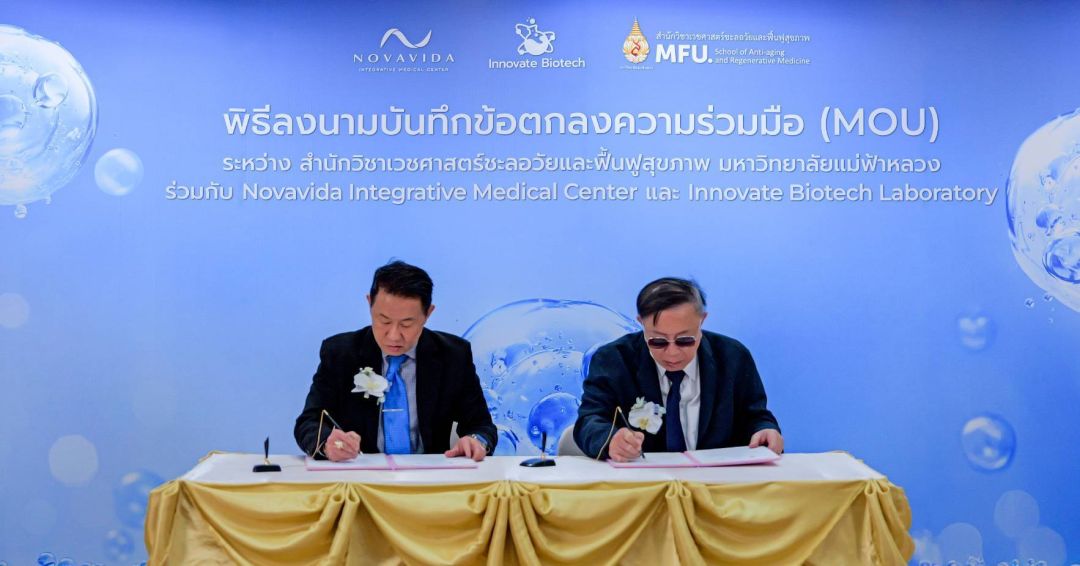 สำนักวิชาเวชศาสตร์ชะลอวัยและฟื้นฟูสุขภาพ มหาวิทยาลัยแม่ฟ้าหลวง เดินหน้าสร้างมาตรฐานใหม่ของเวชศาสตร์ชะลอวัยและฟื้นฟูสุขภาพของประเทศ ด้วยการลงนามบันทึกข้อตกลงความร่วมมือ (MOU) ร่วมกับ Novavida Integrative Medical Center และ Innovate Biotech Laboratory เพื่อบูรณาการการศึกษา งานวิจัย และการแพทย์เชิงปฏิบัติในศาสตร์ด้าน Anti-Aging & Regenerative Medicine อย่างเป็นระบบและยั่งยืน