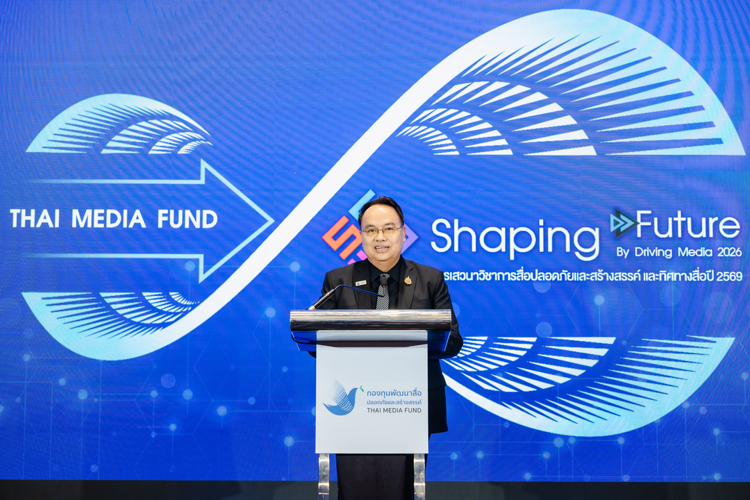 (23 ธันวาคม 2568) กองทุนพัฒนาสื่อปลอดภัยและสร้างสรรค์ (THAI MEDIA FUND) จัดเสวนาวิชาการสื่อปลอดภัยและสร้างสรรค์ และทิศทางสื่อปี 2569 ภายใต้แนวคิด “Shaping the Future by Driving Media 2026” เพื่อวิเคราะห์แนวโน้มและทิศทางการพัฒนาสื่อไทย พร้อมขับเคลื่อนระบบนิเวศสื่อที่เอื้อต่อการเปลี่ยนแปลงสังคมอย่างสร้างสรรค์