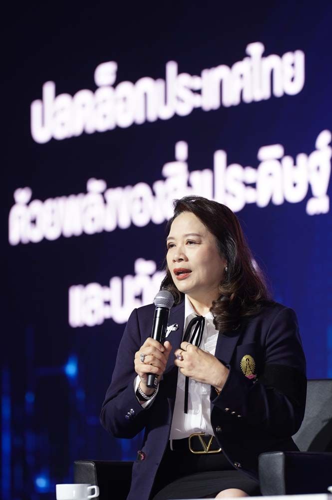 ต่อมา เป็นการเสวนาในหัวข้อ “Next Gen Innovators: คนรุ่นใหม่กับโลกวิทยาศาสตร์แห่งอนาคต จุดเปลี่ยนประเทศไทยด้วยพลังนวัตกรรม” โดย ศาสตราจารย์กิตติคุณ นายแพทย์สุทธิพร จิตต์มิตรภาพ ประธานกรรมการพิจารณางบประมาณด้านวิทยาศาสตร์ วิจัยและนวัตกรรม ปี 2569 ศาสตราจารย์ เภสัชกรหญิง ดร.พรอนงค์ อร่ามวิทย์ รองอธิการบดีจุฬาลงกรณ์มหาวิทยาลัย และคุณไชยวัฒน์ เพชรโลหะกุล บริษัท ตั้งเซียะปิง โลหะกิจ จำกัด รวบรวมมุมมองจาก 3 ภาคส่วน (นโยบาย-การศึกษา-ภาคธุรกิจ) เพื่อตอบโจทย์สำคัญ 5 มิติ ดังนี้