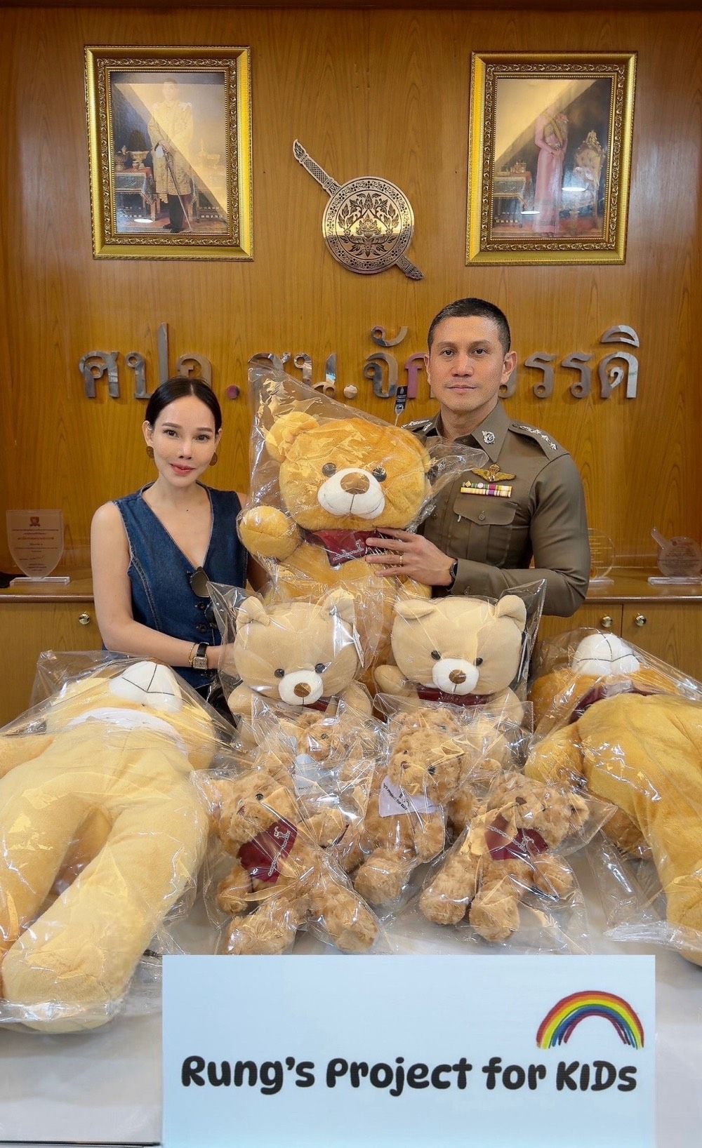 ตามมาด้วยการส่งความสุขให้กับเด็กๆ ที่ชายแดนไทย-กัมพูชา โดยผ่าน หมอเปรม พ.ท. ภูวดล บุญรอด รองผู้อำนวยการโรงพยาบาลค่ายกฤษณ์สีวะรา สังกัดกองทัพบก ที่นำตัว Rung’s Project ไปร่วมจัดกิจกรรมให้กับเด็กๆ ที่อำเภอพนมดงรัก จังหวัดสุรินทร์ นอกจากนี้คุณรุัง ธนิภา พุ่มเรือง ยังมีการส่งมอบตัว Rung’s Project ให้กับอีกหลายหน่วยงาน อาทิเช่น กองบัญชาการตำรวจสืบสวนสอบสวนอาชญากรรมทางเทคโนโลยี (บช.สอท.) ให้เกียรติรับมอบโดย ไซเบอร์กบ พล.ท.สุรพล เปรมบุตร บัญชาการตำรวจสืบสวนสอบสวนอาชญากรรมทางเทคโนโลยี หน่วยงานต่อมาคือหน่วยบัญชาการรักษาดินแดน ให้เกียรติรับมอบโดย พล.ต.นฤดล สุขมา รองผู้บัญชาการหน่วยบัญชาการรักษาดินแดน รวมถึงสถานีตำรวจในนครบาล ได้แก่ สถานีตำรวจนครบาลจักรวรรดิ ให้เกียรติรับมอบโดย ผู้กำกับอาร์ม พ.ต.อ.วัชรวีร์ ธรรมเสมา ผกก.สน.จักรวรรดิ สถานีตำรวจนครบาลมักกะสัน ให้เกียรติรับมอบโดย ผู้กำกับโป้ง พ.ต.อ. อุรัมพร ขุนเดชสัมฤทธิ์ ผกก.สน.มักกะสัน สถานีตำรวจนครบาลนิมิตรใหม่ ให้เกียรติรับมอบโดย ผู้กำกับตูน พ.ต.อ. พีรรัฐ โยมา ผกก.สน.นิมิตรใหม่และคณะ รวมถึงสถานีตำรวจภูธรเมืองพังงา จังหวัดพังงา ให้เกียรติรับมอบโดย ผู้กำกับอ้น พ.ต.อ. วีระพงศ์ รักขิโต ผกก.สภ.เมืองพังงา และที่สุดท้าย คือ โรงเรัยนในสังกัด กทม. โรงเรียนบ้านหนองระแหง (ชมแสงประชานุกูล) เขตคลองสามวา กทม.