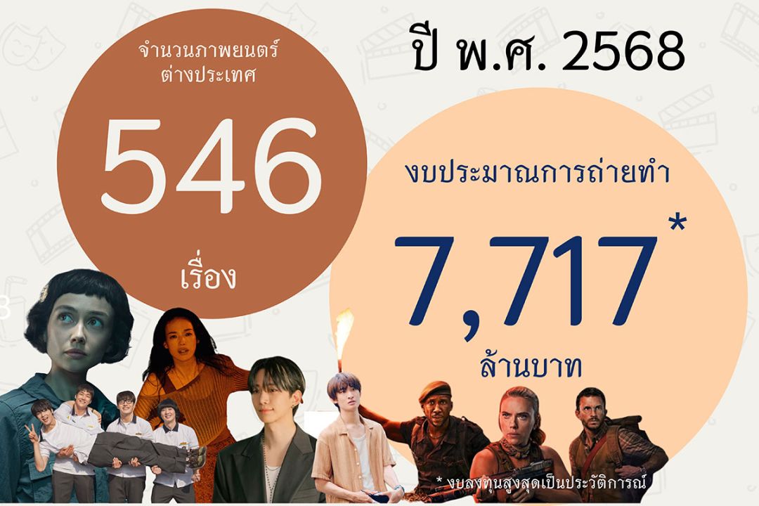 นายจาตุรนต์ ภักดีวานิช อธิบดีกรมการท่องเที่ยว เปิดเผยว่า ปี พ.ศ. 2568 ประเทศไทยมีกองถ่ายภาพยนตร์ต่างประเทศเข้ามาถ่ายทำกว่า 546 เรื่อง สร้างรายได้หมุนเวียนในประเทศกว่า 7,717 ล้านบาท สะท้อนถึงศักยภาพของประเทศไทยทั้งด้านสถานที่ถ่ายทำ ความพร้อมของบุคลากร โครงสร้างพื้นฐาน และระบบสนับสนุนการถ่ายทำที่มีมาตรฐานเป็นที่ยอมรับในระดับสากล “จากความสำเร็จดังกล่าว กรมการท่องเที่ยวจึงตั้งเป้าในปี พ.ศ. 2569 ให้รายได้จากกองถ่ายต่างประเทศเพิ่มสูงขึ้นอย่างต่อเนื่อง โดยมุ่งเน้นการทำงานเชิงรุก สร้างความร่วมมือกับหน่วยงานที่เกี่ยวข้อง และยกระดับประเทศไทยให้เป็น Film-Friendly Destination ที่สามารถแข่งขันได้ในเวทีโลก”