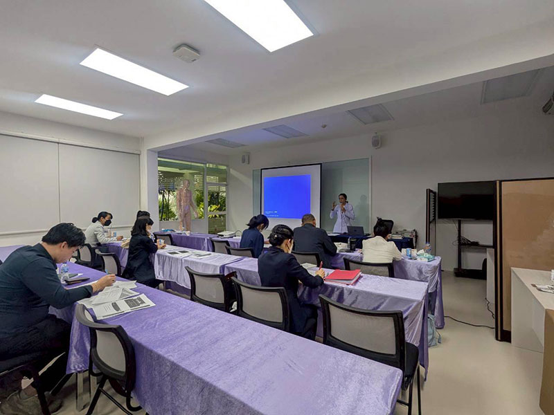 บรรยากาศการอบรมเป็นไปอย่างคึกคัก ผู้เข้าอบรมให้ความสนใจและมีส่วนร่วมอย่างเต็มที่ โดยจุดเด่นของหลักสูตรอยู่ที่การประยุกต์ใช้เทคนิคการสอนแนวใหม่ ซึ่งต่อยอดจากองค์ความรู้ด้านการเป็นครูแพทย์มืออาชีพจากหลักสูตรอบรมของคณะแพทยศาสตร์ศิริราชพยาบาล ทำให้กระบวนการเรียนรู้เน้นการคิดวิเคราะห์ การมีส่วนร่วม และการลงมือปฏิบัติจริง สามารถนำไปใช้กับการให้บริการสุขภาพในสถานการณ์จริงได้อย่างมีประสิทธิภาพ โดยมี รศ.ดร.ภก.สุรพจน์ วงศ์ใหญ่ คณบดีวิทยาลัยเฮลท์ แอนด์ เวลเนส และผู้เชี่ยวชาญสมุนไพรของสหประชาชาติ พร้อมด้วย ดร.พท.คณิศร์ณิชา ชาญภา รองคณบดีฝ่ายการแพทย์แผนไทย วิทยาลัยเฮลท์ แอนด์ เวลเนส DPU และผู้อำนวยการดี ซักเซส คลินิกแพทย์แผนไทย และ พท.นิกรณ์ จันทร์แสง หัวหน้าแพทย์แผนไทยประจำสถานพยาบาล ตลอดจนทีมแพทย์แผนไทยเข้าร่วมเป็นวิทยากร