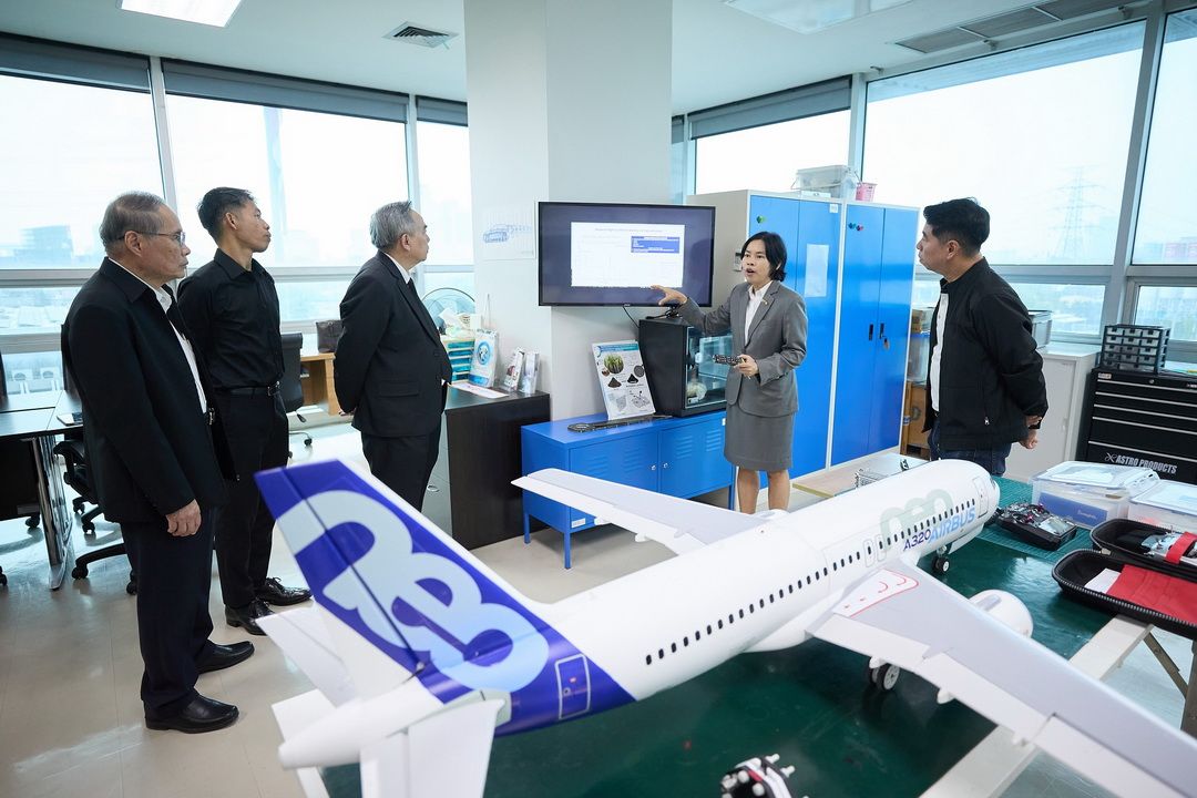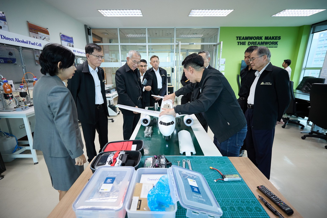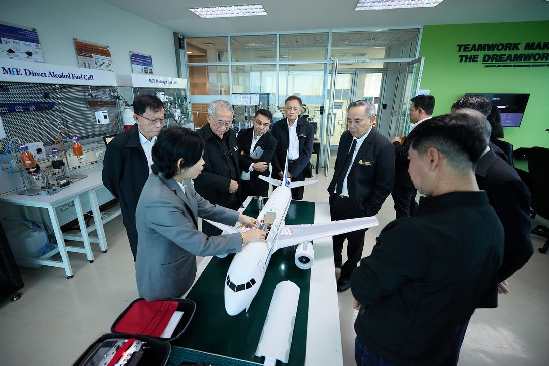 21 มกราคม 2569 มหาวิทยาลัยเทคโนโลยีพระจอมเกล้าพระนครเหนือ (มจพ.) เดินหน้าขับเคลื่อนงานวิจัยพลังงานสะอาดอย่างเป็นรูปธรรม โดยศาสตราจารย์ ดร.ธีรวุฒิ บุณยโสภณ นายกสภามหาวิทยาลัยฯ พร้อมด้วยศาสตราจารย์ ดร.ธานินทร์ ศิลป์จารุ อธิการบดี มจพ. ผู้ช่วยศาสตราจารย์ปรีชา อ่องอารี ประธานที่ปรึกษาอธิการบดีและรองอธิการบดีฝ่ายวางแผน และพัฒนาองค์กร ศาสตราจารย์ ดร.นิสัย เฟื่องเวโรจน์สกุล คณบดี TGGS พร้อมคณะผู้บริหาร มจพ. ร่วมรับมอบเครื่องบินเล็กจำลองจากบริษัท แอ็ดวานซ์ แอร์โร่เท็ค จำกัด เพื่อใช้เป็นต้นแบบในการพัฒนางานวิจัยด้านพลังงานไฮโดรเจนสำหรับยานยนต์และอากาศยานสมัยใหม่ ซึ่งเป็นงานวิจัยร่วมกันระหว่าง มจพ. และบริษัท แอ็ดวานซ์ แอร์โร่เท็ค จำกัด