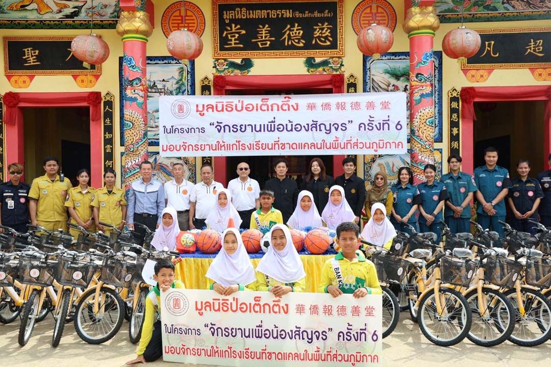 ระหว่างวันที่ 11 พฤศจิกายน 2568 – 22 มกราคม 2569 มูลนิธิป่อเต็กตึ๊ง โดย นายวิเชียร เตชะไพบูลย์ ห่วงใยนักเรียนในพื้นที่ชนบทภาคกลางและภาคใต้ มอบหมายให้ คณะกรรมการ และผู้ช่วยกรรมการมูลนิธิฯ นำโดย นายจารุรัตน์ คุณัตถานนท์ กรรมการและเหรัญญิก นายสุรพงศ์ เสรฐภักดี กรรมการและรองเหรัญญิก นายชาญกิจ วิทยาวรากรณ์ กรรมการ นายชูเดช เตชะไพบูลย์ ผู้ช่วยกรรมการ นำทีมฝ่ายสาธารณภัย และฝ่ายสังคมสงเคราะห์ ลงพื้นที่ภาคกลางและภาคใต้ มอบรถจักรยานพร้อมอุปกรณ์กีฬาและค่าพาหนะให้แก่โรงเรียนชนบทที่ขาดแคลนภาคกลางและภาคใต้ ในโครงการ “จักรยานเพื่อน้องสัญจร” ครั้งที่ 6 รวม 20 จังหวัด 100 โรงเรียน ประกอบด้วย จังหวัดพระนครศรีอยุธยา ลพบุรี ชัยนาท สุพรรณบุรี กาญจนบุรี สมุทรสงคราม ชลบุรี จันทบุรี ตราด สระแก้ว ชุมพร สุราษฎร์ธานี นครศรีธรรมราช พัทลุง ตรัง สตูล สงขลา ปัตตานี ยะลา และนราธิวาส รวมจำนวนจักรยาน 2,000 คัน อุปกรณ์กีฬา จำนวน 100 ชุด และค่าพาหนะแก่โรงเรียนๆ ละ 2,000 บาท รวมงบประมาณดำเนินการทั้งสิ้น 2,854,000 บาท