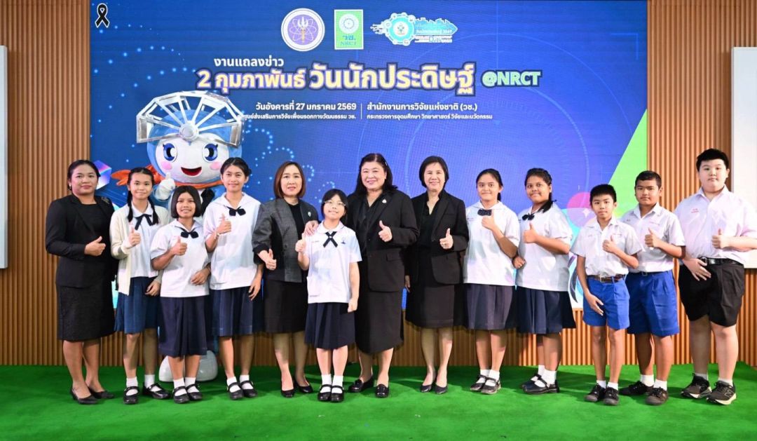 เมื่อวันที่ 27 มกราคม 2569 สำนักงานการวิจัยแห่งชาติ (วช.) กระทรวงการอุดมศึกษา วิทยาศาสตร์ วิจัยและนวัตกรรม จัดงานแถลงข่าว “2 กุมภาพันธ์ วันนักประดิษฐ์ @NRCT” โดย ดร.วิภารัตน์ ดีอ่อง ผู้อำนวยการสำนักงานการวิจัยแห่งชาติ เป็นประธาน พร้อมด้วย คณะนักประดิษฐ์ผู้ได้รับรางวัลการประกวดสิ่งประดิษฐ์และนวัตกรรมระดับเยาวชน ทั้งในระดับประถมศึกษาตอนปลาย, ระดับมัธยมศึกษา, ระดับอาชีวศึกษา, ระดับอุดมศึกษา และมหกรรมการประกวดสิ่งประดิษฐ์และนวัตกรรมนานาชาติ ผู้บริหารหน่วยงาน คณะผู้บริหาร วช. เข้าร่วมในพิธี ณ ศูนย์ส่งเสริมการวิจัยเพื่อมรดกทางวัฒนธรรม