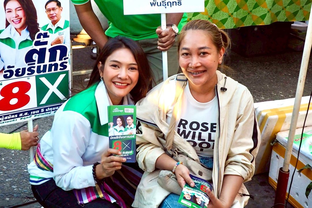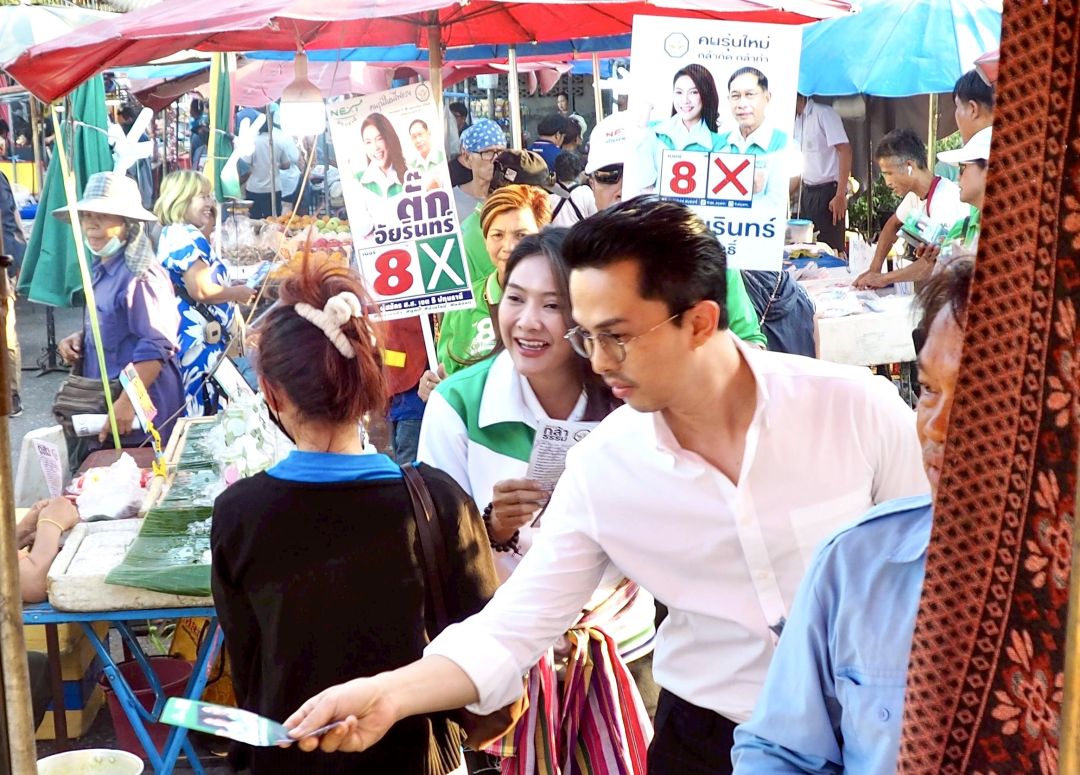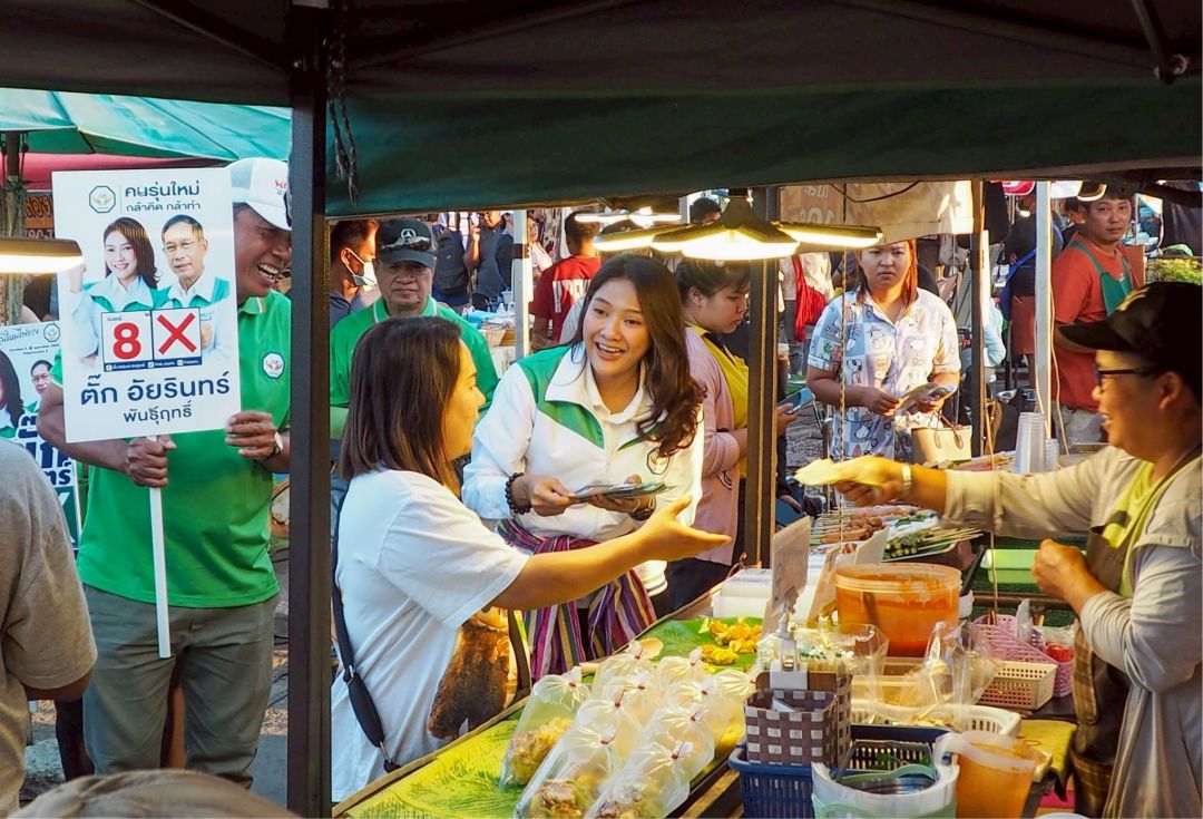 “ตั๊ก–อัยรินทร์” ควง “โย คณากร” อินฟลูฯ คนดังวงการข่าว ลงพื้นที่ตลาดปู่โพธิ์ ขอคะแนนเสียง ชูสโลแกน “คนบ้านใหม่ เลือกผู้แทนคนใหม่”