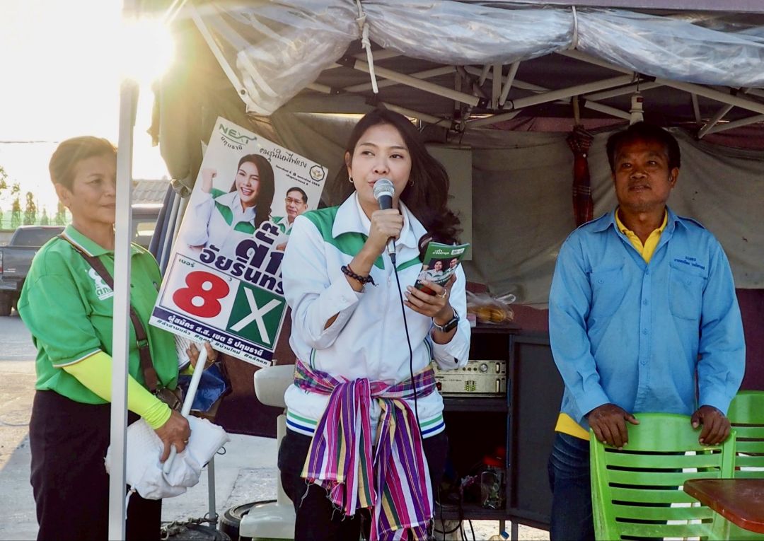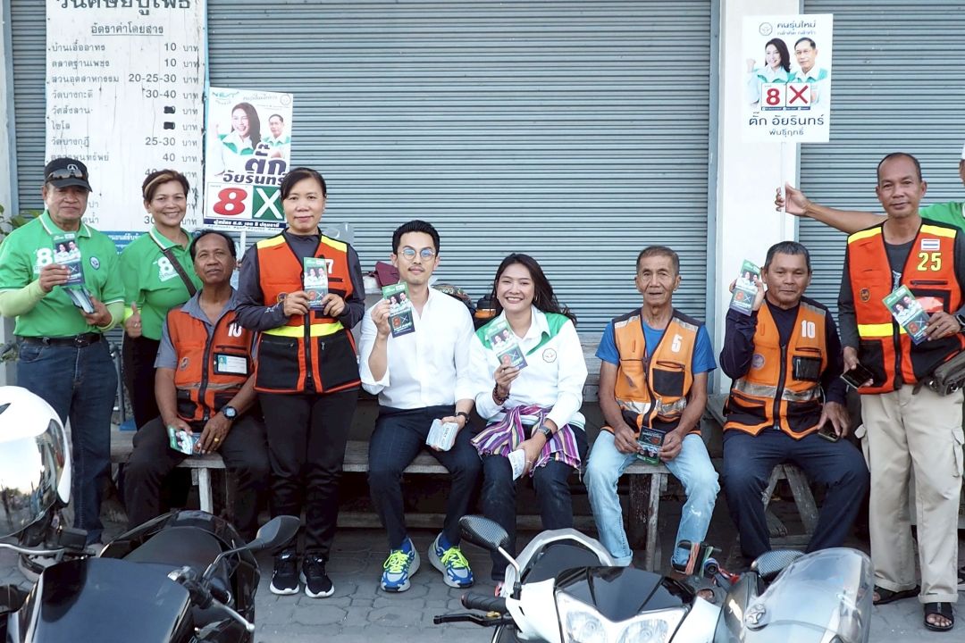 ที่ตลาดนัดปู่โพธิ์ ต.บ้านใหม่ อ.เมือง จ.ปทุมธานี น.ส.อัยรินทร์ พันธุ์ฤทธิ์ หรือ “ตั๊ก อัยรินทร์” ผู้สมัคร ส.ส. เขต 5 ปทุมธานี พรรคกล้าธรรม หมายเลข 8 พร้อมด้วย นายคณากร คงประทีป หรือ “โย คณากร” อินฟลูเอนเซอร์สายข่าว ลงพื้นที่พบปะประชาชน ขอคะแนนเสียง พร้อมชูสโลแกน “คนบ้านใหม่ เลือกผู้แทนคนใหม่”