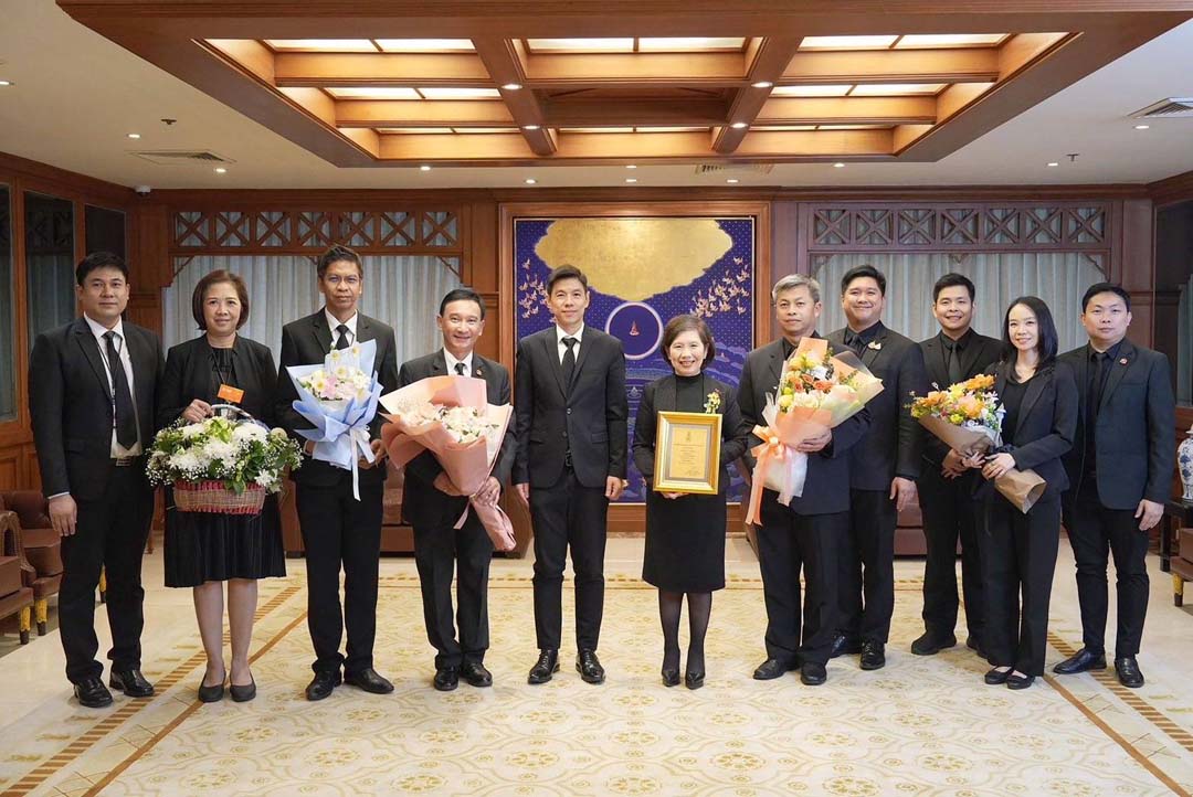 ดร.มหัทธนะ อัมพรพิสิฏฐ์ กรรมการผู้จัดการ ธนาคารอาคารสงเคราะห์ แสดงความยินดีแก่ นางสาวธิดาพร มีกิ่งทอง รองกรรมการผู้จัดการ ธอส. ในโอกาสได้รับโล่ประกาศเกียรติคุณนิสิตเก่าดีเด่น มหาวิทยาลัยเกษตรศาสตร์ ประจำปี 2569 ประเภทนักบริหารภาครัฐวิสาหกิจ จาก ดร.กฤษณพงศ์ กีรติกร นายกสภามหาวิทยาลัยเกษตรศาสตร์ โดยสมาคมนิสิตเก่ามหาวิทยาลัยเกษตรศาสตร์ ในพระบรมราชูปถัมภ์ มอบโล่ให้นิสิตเก่าผู้มีผลงานดีเด่น ประสบความสำเร็จในการบริหาร เป็นแบบอย่างที่ดี และทำคุณประโยชน์ให้แก่องค์กร เมื่อวันที่ 2 กุมภาพันธ์ 2569 ณ สมาคมนิสิตเก่ามหาวิทยาลัยเกษตรศาสตร์ ในพระบรมราชูปถัมภ์