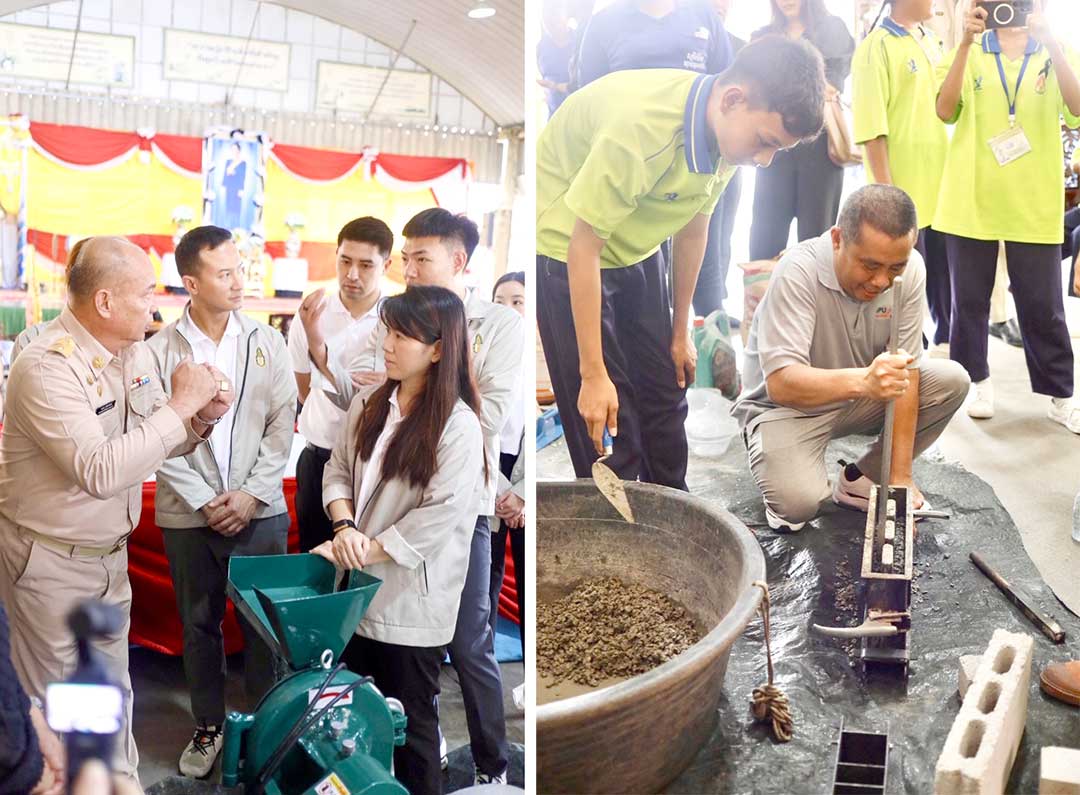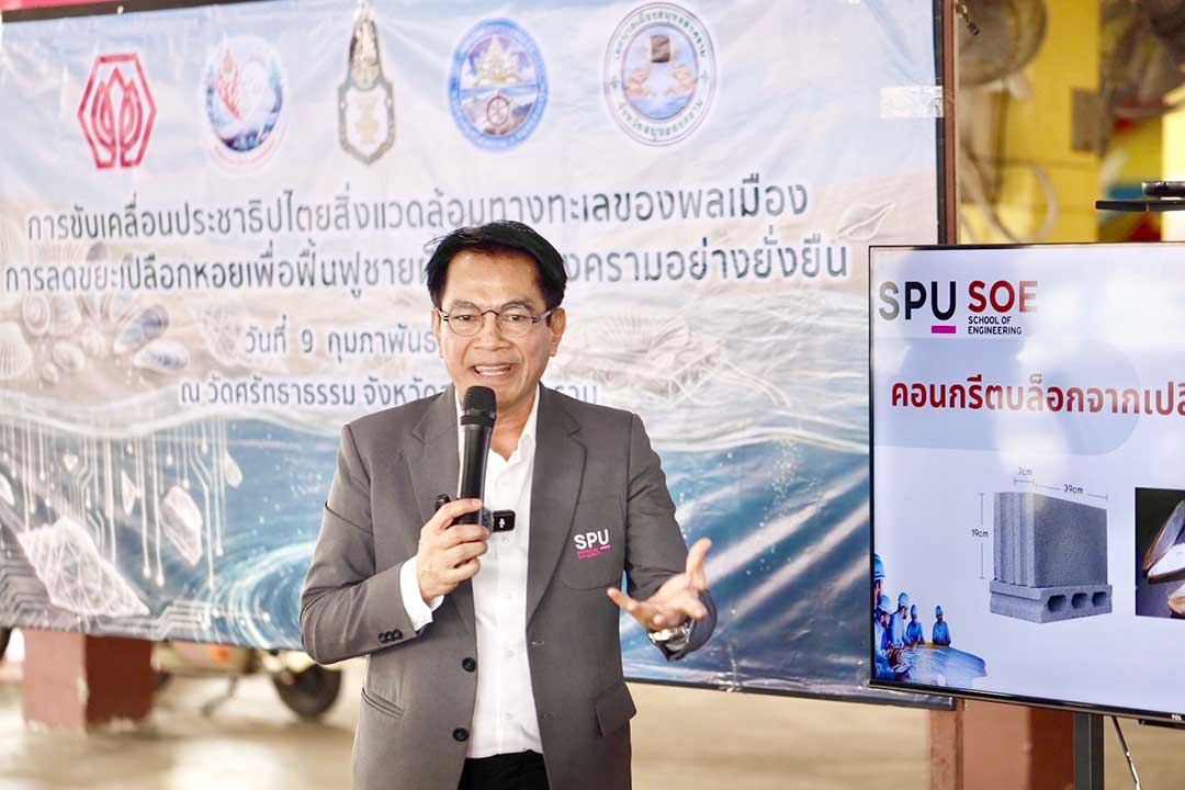 ว่าที่ร้อยตรี บัณฑิต ป้านสวาท คณะกรรมการคณะประสานงานองค์กรชุมชน จ.สมุทรสงคราม บรรยายให้ความรู้ในหัวข้อ สาเหตุ ผลกระทบและการป้องกันมลภาวะทางทะเล ขณะที่คณะวิศวกรรมศาสตร์ มหาวิทยาลัยศรีปทุม จัดกิจกรรมให้ความรู้ด้านการแปรรูปขยะเปลือกหอยเพื่อสร้างมูลค่าเพิ่ม พร้อมจัดเวิร์กช็อปสาธิตการแปรรูปเปลือกหอยแมลงภู่เป็นอิฐบล็อกเพื่อนำมาใช้เป็นวัสดุทดแทนในงานก่อสร้าง ช่วยลดปริมาณขยะและส่งเสริมการใช้ทรัพยากรอย่างคุ้มค่าควบคู่กับการสร้างเศรษฐกิจชุมชน